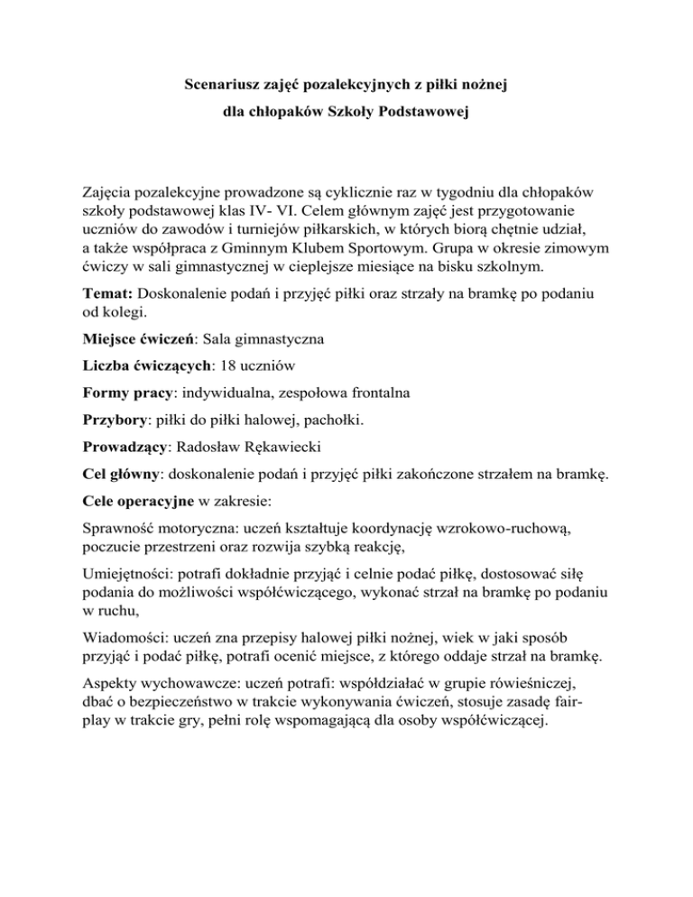 Scenariusz zajęć pozalekcyjnych z piłki nożnej dla chłopaków