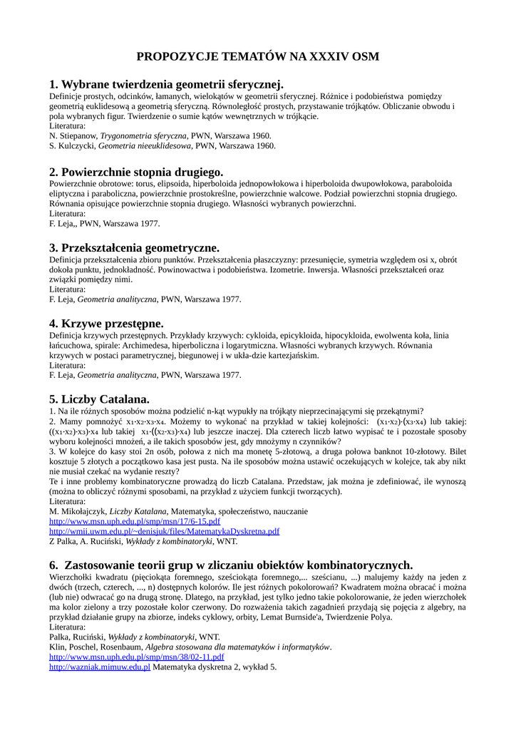 PROPOZYCJE TEMATÓW NA XXXIV OSM