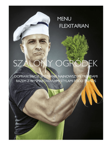 MENU FLEXITARIAN SZALONY OGRÓDEK DOPRAW SWOJE SPOTKANIE NAJNOWSZYMI TRENDAMI RAZEM Z WYSMAKOWANYMI STYLAMI FOOD TRENDS MENU FLEXITARIAN 1 Przerwa poranna - 32 pln Napój energetyczny z warzyw sezonowych (marchew, seler naciowy, szpinak, pomidor) Płatki pełnoziarniste z owocem granatu i naturalnym jogurtem Ciasteczka owsiane z rodzynkami Jabłko lub inny owoc sezonowy Woda smakowa Kawa, herbata Drugie śniadanie - 28 pln Koktajl bananowy z mleka sojowego Świeże warzywa z dipem z sera pleśniowego Kanapka z pełnoziarnistego pieczywa z chudym twarogiem i pestkami dyni Suszone owoce Woda smakowa Kawa, herbata Lunch serwowany - 82 pln Woda, kawa lub herbata Sałatka z gotowanym jajkiem, oliwkami, papryką i olejem orzechowym Krem kukurydziany z mlekiem kokosowym i kiełkami lucerny Razowy makaron ze szpinakiem i orzechami włoskimi Czekoladowe brownie Cena za Przerwę poranną +Drugie śniadanie +Lunch bufet to 119 pln/os. (obowiązuje przy zamówieniu dla minimum 25osób) Wzbogacenie przerwy Trzy rodzaje kanapek na razowym pieczywie z pomidorami i bazylią, pastą z awokado, serem pleśniowym 18 pln Tortilla z grillowanymi warzywami i kozim serem 25 pln Świeżo wyciskany sok z pomarańczy (200ml) 15 pln Sok owocowy (200ml) 8 pln MENU FLEXITARIAN 2 Przerwa poranna - 32 pln Napój energetyczny z warzyw sezonowych (marchew, seler naciowy, szpinak, pomidor) Jogurt grecki z suszonymi owocami i miodem Ciasteczka owsiane z rodzynkami Jabłko lub inny owoc sezonowy Woda smakowa Kawa, herbata Drugie śniadanie - 32pln Świeże warzywa z dipem z sera pleśniowego Kanapka z pełnoziarnistego pieczywa z kozim serem i migdałami Paluch z ciasta francuskiego z pastą pomidorowo-bazyliową Baton energetyczny własnego wypieku Woda smakowa Kawa, herbata Lunch bufet - 92pln Woda, kawa, herbata Sałatka z gotowanym jajkiem, oliwkami, papryką i olejem orzechowa Sałatka z razowego makarony, grillowanych warzyw i tartego sera wędzonego Pomidory z Mozzarellą sosem pesto i rukolą Pieczywo pełnoziarniste, masło Krem z zielonego groszku i imbiru z razowymi grzankami Tortilla z tajskimi warzywami i sosem chili Penne z sosem kokosowym, serem pleśniowym i zielonymi warzywami Risotto z kaszy pęczak z grzybami i rozmarynem Grillowana cukinia z suszonymi pomidorami i papryką Ziemniaczane gratin z tymiankiem i rozmarynem Sałatka owocowa z miodem i orzechami Placek dnia – ciasto domowe własnego wypieku Panna cotta z sosem malinowym i miętą Kawa, herbata Cena za Przerwę poranną +Drugie śniadanie +Lunch bufet to 132 pln/os. (obowiązuje przy zamówieniu dla minimum 25osób) Wzbogacenie przerwy: Trzy rodzaje kanapek na razowym pieczywie z pomidorami i bazylią, pastą z awokado, serem pleśniowym 18 pln Tortilla z grillowanymi warzywami i kozim serem 25 pln Świeżo wyciskany sok z pomarańczy (200ml) 15 pln Sok owocowy (200ml) 8 pln