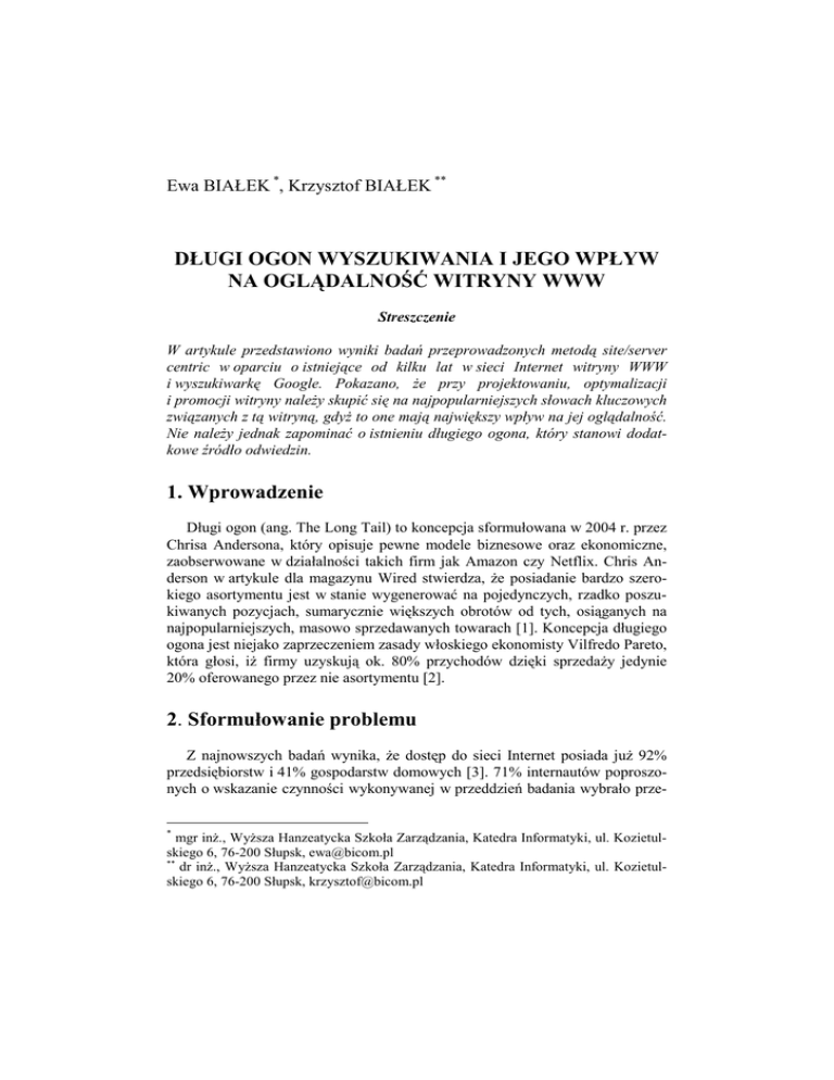 DŁUGI OGON WYSZUKIWANIA I JEGO WPŁYW NA