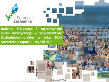 Badanie krajowego i zagranicznego ruchu turystycznego w Województwie Zachodniopomorskim w roku 2014 Streszczenie raportu – wyniki PAPI Listopad 2014 Przedmiot, cele i termin badania Termin badania PAPI: od 23 czerwca do 24 sierpnia 2014 r. Przedmiot badania: przeprowadzenie w 2014 r. badań krajowego i zagranicznego ruchu turystycznego w Województwie Zachodniopomorskim Cel badania: uzyskanie informacji na temat wielkości ruchu turystycznego w Województwie Zachodniopomorskim, określenie jego struktury i dynamiki w okresie 2010-2014 oraz badanie uczestników krajowego i zagranicznego ruchu turystycznego Obszar prowadzenia badań Na terenie miast: Szczecin i Koszalin W środkowej części Województwa obejmującej m.in. Złocieniec i Czaplinek Na terenie pasa nadmorskiego obejmującego m.in. Świnoujście, Międzyzdroje, Niechorze, Kołobrzeg, Mielno i Darłowo W południowej części województwa obejmującej m.in. Cedynię, Drawno i Wałcz Badanie przeprowadzono w miejscowościach, gdzie występuje największa koncentracja ruchu turystycznego, wyznaczonych przez Zamawiającego, w uzgodnieniu z samorządami i jednostkami branży turystycznej. Charakterystyka próby badawczej Zostało przeprowadzonych 2200 bezpośrednich wywiadów z osobami odwiedzającymi Województwo Zachodniopomorskie. Minimalna wielkość próby badawczej zakładała: -minimum 1100 respondentów krajowych, -minimum 1100 respondentów zagranicznych. Badanie zostało zrealizowane w 15 miejscowościach Województwa Zachodniopomorskiego. Charakterystyka uczestników ruchu turystycznego - turyści krajowi Wśród tegorocznych badanych było niemal tyle samo kobiet co mężczyzn (odpowiednio 50,8% i 49,2%). Struktura wiekowa krajowych turystów była bardzo zróżnicowana. Najwięcej było osób w wieku 30-39 lat (23,9%), w wieku 50–59 lat (22,0%) i w przedziale wiekowym 40–49 lat (18%). W związku małżeńskim lub partnerskim pozostawało 56,2% uczestników krajowego ruchu turystycznego, a niemal 1/3 osób wolnym. pozostawała w stanie Charakterystyka uczestników ruchu turystycznego - turyści zagraniczni Najwięcej ankietowanych pochodziło z: Niemiec (56,9%), Wielkiej Brytanii (10,8%), Czech (5,3%). W strukturze wiekowej uczestników zagranicznego ruchu turystycznego najliczniej reprezentowani są respondenci w przedziale wiekowym 40–49 lat (23,1% badanych) , 30-39 lat (20,7%) i 25-29 (18,5%). W badaniu było niewiele więcej kobiet niż mężczyzn (odpowiednio 52,5 % wobec 47,5%). Ponad połowa (59,9%) uczestników zagranicznego ruchu turystycznego pozostawała w związku małżeńskim lub partnerskim. Sylwetka uczestnika ruchu turystycznego • Polski turysta jest osobą w wieku od 30 do 39 lat. Pozostaje w związku małżeńskim i legitymuje się średnim wykształceniem. Swój wolny czas spędza z rodziną lub ze znajomymi. • Zagraniczny turysta jest Niemcem lub Niemką w wieku od 40 do 49 lat. Pozostaje w związku małżeńskim, a wolny czas spędza najchętniej z rodziną lub przyjaciółmi. Preferencje uczestników krajowego ruchu turystycznego Polski turysta najbardziej lubi poruszać się samochodem i nocuje u rodziny lub znajomych, kiedy jednak nie ma takiej możliwości poszukuje kwatery, koniecznie z osobną łazienką. Krajowy turysta zatrzymuje się w Województwie Zachodniopomorskim na 4 do 7 dni i chce odwiedzać ten region co najmniej raz na rok. Najchętniej wypoczywa w innym województwie, koniecznie nad morzem lub jeziorem. Preferencje uczestników zagranicznego ruchu turystycznego Zagraniczny turysta preferuje poruszanie się samochodem, a nocuje głównie w hotelach. W obiekcie hotelowym najważniejsza jest dla niego osobna łazienka i dostęp do Internetu. Przebywa w Województwie Zachodniopomorskim od 4 do 7 dni i najczęściej jest tu pierwszy raz. Najchętniej wypoczywa nad morzem lub jeziorem. Źródła informacji o regionie - ruch krajowy Rysunek 1. Źródła informacji respondentów o Województwie Zachodniopomorskim (n=1 100). Byłem/byłam tutaj wcześniej 47,4% Od rodziny, znajomych 31,8% Z Internetu 13,2% Z telewizji 3,2% Z katalogów biur podróży 1,9% Inne, jakie? 1,3% Z prasy 0,5% Z książek 0,5% Z centrów informacji turystycznej 0,2% Z imprez promocyjnych 0,1% 0% 10% 20% 30% Źródło: Opracowanie EU-Consult Sp. z o.o. na podstawie badań PAPI 40% 50% Informacje, których poszukuje turysta krajowy Rysunek 2. Informacje istotne dla uczestników krajowego ruchu turystycznego (n=1 100). O miejscach, które warto zobaczyć 71,4% O zakwaterowaniu 49,3% O imprezach kulturalnych 31,7% O szlakach turystycznych 31,3% O wyżywieniu 31,3% O możliwościach dojazdu komunikacją… 29,7% O imprezach sportowych 17,0% Trudno powiedzieć 8,6% Inne 1,0% 0% 20% 40% Źródło: Opracowanie EU-Consult Sp. z o.o. na podstawie badań PAPI 60% 80% Źródła informacji o regionie - ruch zagraniczny Rysunek 3. Źródła informacji respondentów o Województwie Zachodniopomorskim (n=1 100). Byłem/byłam tutaj wcześniej 40,7% Od rodziny, znajomych 33,9% Z Internetu 15,5% Z katalogów biur podróży 6,2% Z telewizji 1,3% Z centrów informacji turystycznej 0,6% Inne, jakie? 0,5% Z prasy 0,5% Z książek 0,4% Z imprez promocyjnych 0,2% 0,0% 5,0% 10,0% 15,0% 20,0% 25,0% 30,0% 35,0% 40,0% 45,0% Źródło: Opracowanie EU-Consult Sp. z o.o. na podstawie badań PAPI Informacje, których poszukuje turysta zagraniczny Rysunek 4. Informacje istotne dla uczestników zagranicznego ruchu turystycznego (n=1 100). O miejscach, które warto zobaczyć 69,2% O wyżywieniu 38,7% O imprezach kulturalnych 38,5% O możliwościach dojazdu komunikacją miejską do atrakcji turystycznych 31,5% O zakwaterowaniu 30,7% O szlakach turystycznych 28,9% O imprezach sportowych 13,5% Trudno powiedzieć Inne 0,0% 8,5% 2,0% 20,0% 40,0% Źródło: Opracowanie EU-Consult Sp. z o.o. na podstawie badań PAPI 60,0% 80,0% Zapotrzebowanie turystów krajowych na specyfikę oferty turystycznej Zdecydowana większość polskich turystów 