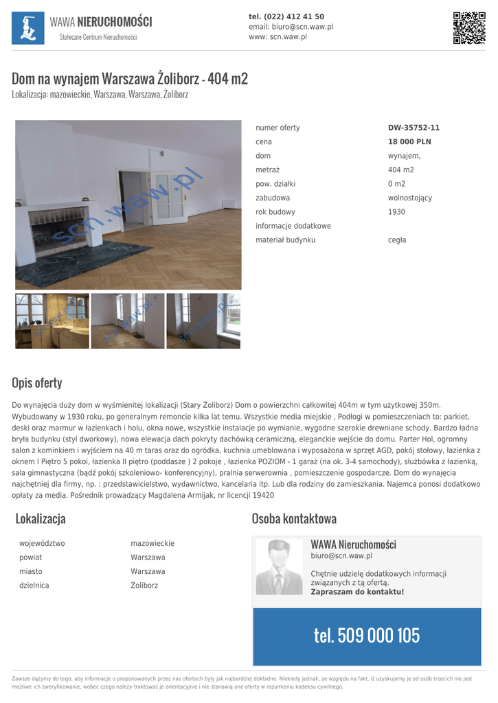 Dom na wynajem Warszawa Żoliborz 404m2 - oferta DW-35752-11