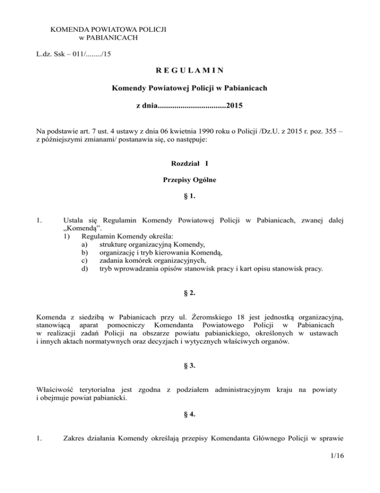 Regulamin KPP Pabianice - Komenda Powiatowa Policji w