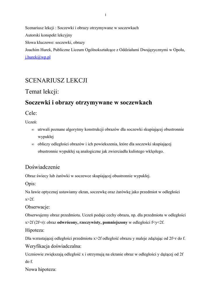 Soczewki i obrazy otrzymywane w soczewkach