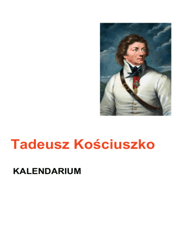 Tadeusz Kościuszko KALENDARIUM Spis treści Dzieciństwo, studia wojskowe, zawiedziona miłość _______________________________ 1 Udział w wojnie o niepodległość Stanów Zjednoczonych Ameryki ____________________ 3 Po powrocie do Polski ______________________________________________________ 6 Na czele pierwszego polskiego powstania narodowego ____________________________ 8 Niewola i emigracja________________________________________________________ 10 Źródła informacji użytych w projekcie __________________________________________ 13 Tadeusz Kościuszko Str. 01 Dzieciństwo, studia wojskowe, zawiedziona miłość 1746 4 lutego – Narodziny Tadeusza Kościuszki 12 lutego - Chrzest Tadeusza Kościuszki 1755 Początek nauki w kolegium pijarskim w Lubieszowie 1758 Śmierci ojca Tadeusza Kościuszki 1760 Kościuszko opuszcza kolegium pijarskie w Lubieszowie 1764 Powrót do Siechnowicz 1765 Przyjęcie Tadeusza Kościuszki do Szkoły Rycerskiej 1766 Kościuszko otrzymuje patent oficerski 1768 Zgon matki, Tekli z Ratomskich 1769 Podróż do Francji w celu kontynuowania studiów. Kościuszko podejmuje studia wojskowe i cywilne w Paryżu Tadeusz Kościuszko Str. 02 1774 Powrót Kościuszki z Francji do Polski po przerwaniu dalszych studiów z powodu braku pieniędzy. Kościuszko odwiedza Szkołę Rycerską w Warszawie. Na skutek zrujnowania Siechnowicz, Tadeusz zamieszkuje u swego opiekuna, stryja Jana Nepomucena Kościuszki, w Sławinku pod Lublinem. 1775 Podczas odwiedzin w zaprzyjaźnionym dworku w Sosnowicy, nawiązuje się wzajemna miłość między Tadeuszem Kościuszką a Ludwiką, córką wojewody Józefa Sosnowskiego. Józef Sosnowski postanawia córkę Ludwikę wydać za mąż za księcia Lubomirskiego, a Tadeusza Kościuszkę odprawić, jako niepożądanego konkurenta do jej ręki. Po upokarzającej odprawie w Sosnowicy Kościuszko sporządza pełnomocnictwa majątkowe, zaciąga pożyczkę i postanawia wyjechać z kraju. Tadeusz Kościuszko Str. 03 Udział w wojnie o niepodległość Stanów Zjednoczonych Ameryki 1776 Kościuszko wyjeżdża z Francji do Ameryki, by wziąć udział w rozpoczętej 19 kwietnia 1775 r. wojnie o niepodległość Stanów Zjednoczonych. W Filadelfii została ogłoszona pierwsza w świecie Deklaracja Niepodległości i Wolności, uchwalona przez Kongres Delegatów 13 Stanów Zjednoczonych Ameryki. W Filadelfii Kościuszko najprawdopodobniej udaje się do znającego język francuski uczonego i wynalazcy oraz współtwórcy Deklaracji Niepodległości, Beniamina Franklina, by oświadczyć mu, że przybywa z ujarzmionej Polski, aby walczącej o wolność Ameryce ofiarować swoją pomoc. Kościuszko wykonuje pierwsze zlecenie dotyczące planu ufortyfikowania ujścia rzeki Delaware w Filadelfii. Kościuszko otrzymuje nominację na inżyniera wojskowego z rangą pułkownika armii amerykańskiej. 1777 Początek ofensywy brytyjskiej armii generała J. Burgoyne’a z Kanady na Ticonderogę Brytyjczycy zdobywają Ticonderogę zgodnie z przewidywaniami Kościuszki. Kościuszko, jako inżynier opóźnia pościg Brytyjczyków na linii odwrotu wojsk własnych, stawiając zasieki z drzewa na drodze i zapory na rzece Wood Creek, niszcząc wszystkie mosty, paląc pozostawione zboże i żywność. Ponadto zajmuje się umocnieniem kolejnych pozycji obronnych cofającej się armii amerykańskiej. Kościuszko zgodnie z rozkazem generała Gatesa wybiera i umacnia Wzgórze Bemisa pod Saratogą w celu zatrzymania armii generała Burgoyne’a. Odparcie ataków brytyjskich na Wzgórze Bemisa. Armia Burgoyne’a nie uzyskawszy powodzenia, wycofuje się nocą pod Saratogę, lecz tam zostaje osaczona. Zwycięstwo Amerykanów pod Saratogą Kościuszko stacjonuje w Albany, sprawując nadzór nad odlewnią dział i fabryką broni. Tadeusz Kościuszko Str. 04 1778 Wydział Wojny kieruje Kościuszkę do ufortyfikowania rzeki Hudson w rejonie West Point. Kościuszko melduje się w West Point, gdzie otrzymuje stanowisko inżyniera – budowniczego twierdzy. Kościuszko w liście do generała Gatesa wyraża żal, że nie może służyć pod jego dowództwem, lecz jednocześnie nie zaniedbuje rozbudowy West Point. 1779 Generał Waszyngton w obecności Kościuszki dokonuje szczegółowej inspekcji umocnień West Point i postanawia zintensyfikować prace w związku z zagrożeniem tego kierunku działań, co wzmacnia pozycję Kościuszki, jako inżyniera. Generał Waszyngton wybiera West Point na swą kwaterę, co powoduje zbliżenie Kościuszki do naczelnego wodza wojsk amerykańskich. 1780 Kościuszce dodatkowo powierzono funkcję naczelnika korpusu inżynierów amerykańskich. Kościuszko wysyła do Waszyngtona prośbę o przeniesienie go do armii południowej generała Gatesa, gdyż umocnienia West Point zostały wybudowane. Po uzyskaniu zgody Waszyngtona Kościuszko opuszcza West Point i udaje się do armii południowej. W Richmond, stolicy stanu Wirginia, Kościuszko odwiedził gubernatora Thomasa Jeffersona i zaprzyjaźnił się z nim. 1781 Zgodnie z rozkazem generała Greena Kościuszko udaje się do miasta Halifax w Północnej Karolinie nad rzeką Roanoke, by je ufortyfikować i przygotować do obrony. Kościuszko wraz z armią południową uczestniczy w działaniach odwrotowych, zabezpieczając jej biwaki i przemarsze. Udział Kościuszki w oblężeniu fortu Ninety Six w Południowej Karolinie, gdzie nadzoruje budowę pozycji oblężniczych fortu. Kościuszko wysłany zostaje do Północnej Karoliny z zadaniem zabezpieczenia umocnieniami magazynów wojskowych. Tadeusz Kościuszko Str. 05 1782 Kościuszko obejmuje dowództwo nad stacjonującym w Ashley Ferry Charlestonu oddziałem, po poległym pułkowniku J. Laurensie. Kościuszko organizuje zasadzkę na wojska brytyjskie, na James Island pod Charlestonem, gdzie zostaje ranny. Była to ostatnia potyczka w tej wojnie. Do opuszczonego przez Brytyjczyków Charlestonu, oddział Kościuszki wkracza wraz z przednią strażą, jako awang