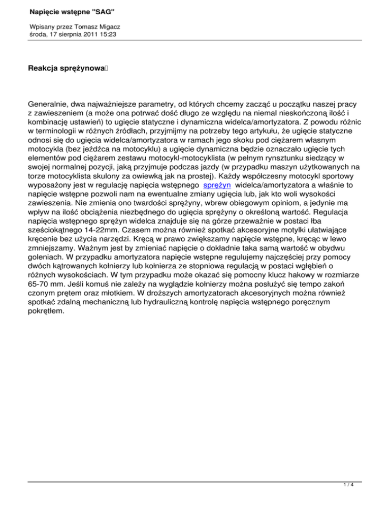 zawieszenia. Nie zmienia ono twardości sprężyny, wbrew obiegowym opiniom, a jedynie ma