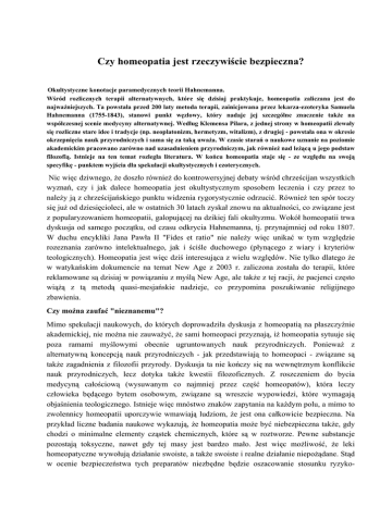 rodzaj stworzenia. Nic więc dziwnego, że dla wielu badaczy z kręgu chrześcijaństwa homeopatia