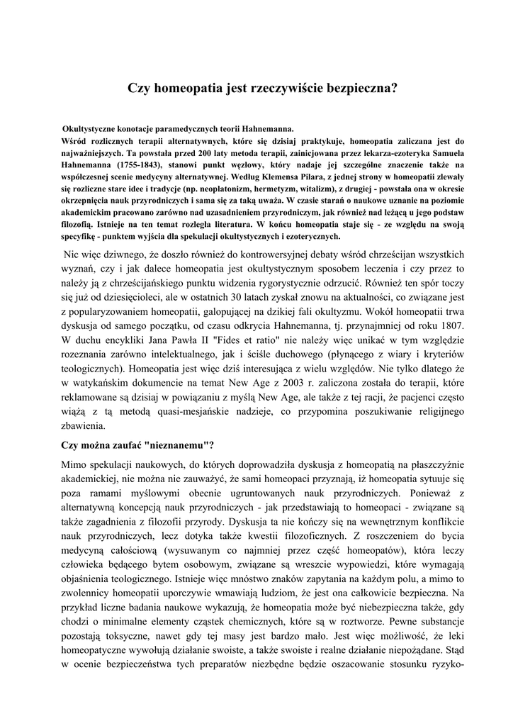 korzystania z homeopatii w oderwaniu od jej tajemnych praktyk, to jednak wpływ okultyzmu, z