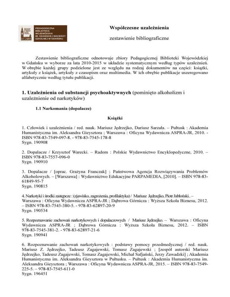 Współczesne uzależnienia zestawienie bibliograficzne 1