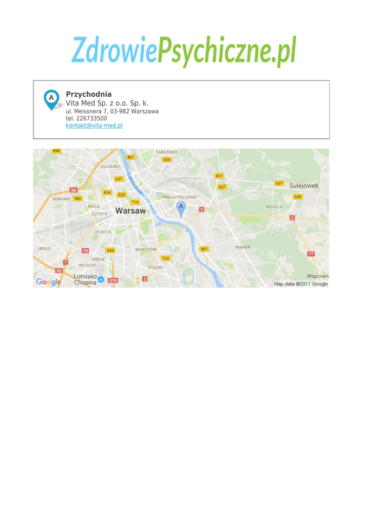 Przychodnia Vita Med Sp. z o.o. Sp. k. ul. Meissnera 7, 03-982 Warszawa tel. 226733500 [email protected]