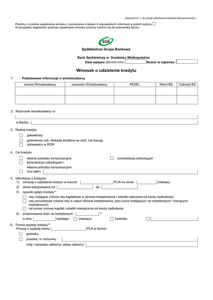 Wniosek o udzielenie kredytu - Bank Spółdzielczy w Grodzisku
