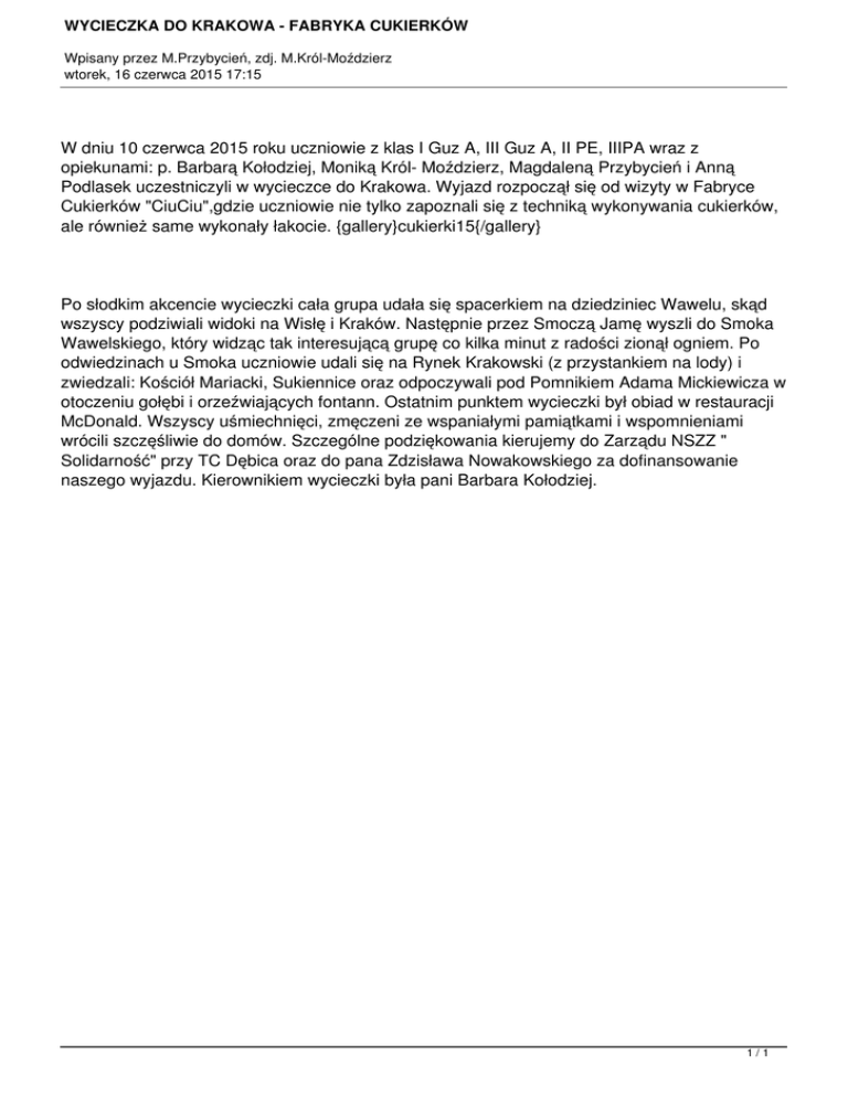 WYCIECZKA DO KRAKOWA - FABRYKA CUKIERKÓW