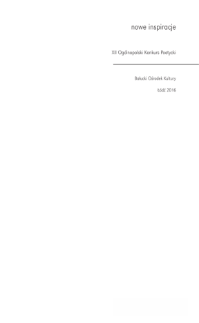 nowe inspiracje XII Ogólnopolski Konkurs Poetycki Bałucki Ośrodek Kultury Łódź 2016 nowe inspiracje 1 (...) Wysoko sobie cenię dwa małe słowa: „nie wiem”. Małe, ale mocno uskrzydlone. Rozszerzające nam życie na obszary, które mieszczą się w nas samych i obszary, w których zawieszona jest nasza nikła Ziemia. (...) Poeta również, jeśli jest prawdziwym poetą, musi ciągle powtarzać sobie „nie wiem”. Każdym utworem próbuje na to odpowiedzieć, ale kiedy tylko postawi kropkę, już ogarnia go wahanie, już zaczyna sobie zdawać sprawę, że jest to odpowiedź tymczasowa i absolutnie niewystarczająca. Więc próbuje jeszcze raz i jeszcze raz, a potem te kolejne dowody jego niezadowolenia z siebie historycy literatury zepną wielkim spinaczem i nazywać będą „dorobkiem” ... (...) W mowie potocznej, która nie zastanawia się nad każdym słowem, wszyscy używamy określeń: „zwykły świat”, „zwykłe życie”, „zwykła kolej rzeczy” ... Jednak w języku poezji, gdzie każde słowo się waży, nic już zwyczajne i normalne nie jest. Żaden kamień i żadna nad nim chmura. Żaden dzień i żadna po nim noc. A nade wszystko żadne niczyje na tym świecie istnienie. Wygląda na to, że poeci będą mieli zawsze dużo do roboty. fragmenty Odczytu Noblowskiego pt. „Poeta i świat”. Wisława Szymborska 2 nowe inspiracje To wielkie wyróżnienie dla mnie móc czytać wiersze, które wpłynęły na Konkurs. Jestem przecież jedną z tych osób, spoza najbliższego kręgu autora, której zostało powierzone czytanie jego wierszy i tym samym obdarzona zostałam zaufaniem, że rzetelnie i uczciwie wykonam swoje zadanie. Bardzo budujące jest, że tylu młodych ludzi próbuje swych sił w poezji. Fakt ten napełnia optymizmem, ponieważ kto pisze, czyta także, gdyż obie aktywności są nierozdzielne, a oznaczają one wkraczanie w świat kultury i sztuki; czerpanie z zawsze żywego źródła ludzkiej twórczości. Udział w konkursie to cenne doświadczenie, wyraz zainteresowań, poszukiwanie własnej drogi i autentycznego sposobu wyrażenia siebie. Aby był coraz pełniejszy, wymaga wytrwałości w zmaganiu się ze sobą i tworzywem wiersza, co jury dostrzegło i uważa za jedną z cenniejszych wartości. Sądzę, że nietajonym oczekiwaniem jurorów jest znalezienie perły - olśniewającego wiersza, powstałego dzięki nieodkrytemu jeszcze talentowi młodego poety. Piszący natomiast skrycie bądź jawnie liczą na laur i uznanie lub choćby bycie dostrzeżonymi; wiążą więc z udziałem w Konkursie pewne nadzieje. Myślę, że obie strony mogłyby być usatysfakcjonowane, a ich oczekiwania nie pozostawałyby tylko w sferze marzeń przy spełnieniu pewnego warunku. Chodzi o to, że mimo iż wśród konkursowych wierszy wiele wyróżnia się pomysłowością, trafną puentą, ciekawym obrazowaniem, oryginalną metaforą, pozostawiają one pewien niedosyt, który bierze się, najogólniej mówiąc, z niedoskonałości warsztatowych. Niedociągnięcia te przy zaangażowaniu piszących można usunąć. Aby stało się to możliwe, proponuję uczestnikom Konkursu udział w warsztatach, kształcących umiejętności niezbędne do świadomej i doskonalszej twórczości. Dzień ogłoszenia wyników Konkursu niech będzie świętem młodych poetów, czasem radości i zabawy. Czesława Muchowiecka Bibliotekarz. Chociaż nie napisała linijki wiersza, poszukuje w sobie boskiego poety, a na półce z książkami – „prawdziwego”. W niedziele mknie rowerem po pogodnych okolicach swojego smutnego miasta. nowe inspiracje 3 Na początku chciałabym podziękować za wszystkie wiersze przesłane na tegoroczny konkurs. Dzięki nim po raz kolejny mogłam zobaczyć, co Was interesuje, niepokoi oraz czym jest dla Was poezja. Najwięcej radości przyniosło mi czytanie wierszy najmłodszych twórców biorących udział w tym konkursie. Zgrabne rymy i zaskakujące frazy sprawiły, że przyznałyśmy więcej nagród niż przewidywały reguły konkursu. Ze starszej grupy udało się nam wyłowić kilkoro twórców wyróżniających się spostrzegawczością oraz sprawnie posługujących się językiem poetyckim. Niestety poszukiwania nie były proste. Ze smutkiem zauważyłam, że wielu spośród Was nie czyta poezji, co ujawniło się w często nieporadnych wersach i złamanym rytmie, a nawet najważniejsza myśl przepadnie, jeśli nie zostanie odpowiednio wyrażona. Wiersze nadesłane na konkurs pokazały jednak wartościowe próby i poszukiwania własnego sposobu wypowiedzi. Dalsze tworzenie może zakończyć się sukcesem, a droga do niego prowadzi przez książki. Joanna Pomykalska Polonistka w okularach i niewyspana studentka, specjalistka ds. zdań wielokrotnie złożonych. Karierę zaczynała w Grupie Teatralnej „25. Godziny”, w której jako czternastolatka recytowała konkursowe wiersze. Amatorka sztuki nowoczesnej, w 2013 roku w ramach projektu Fabryki Sztuki 220VOLT! zorganizowała wystawę młodych artystów „Talk to Me”. Działa w uniwersyteckim kole krytycznoliterackim. Obecnie pracuje w Domu Literatury w Łodzi. 4 nowe inspiracje XII Ogólnopolski Konkurs Poetycki zorganizowany przez Bałucki Ośrodek Kultury nie ustępuje poziomem od poprzednich edycji. Nadal staje się wyraźne, że poezja nie jest w centrum zainteresowania młodych ludzi. Sądzę, że humaniści (w tym głównie socjologowie i pedagogodzy) mają się nad czym zastanawiać. Proces tworzenia wiersza (wolnego bądź rymowanego) napotyka na słabe opanowanie warsztatu ale również brak przekonującego odbiorcę tematu, pomysłu. Szczególnie rozczarowała grupa wiekowa 16-18 lat w wierszach na dowolny temat. Natomiast (dla mnie osobiście) miłym zaskoczeniem okazała się grupa najmłodszych uczestników. Tu nie brakowało inwencji i ciekawego ujęcia tematu, łącznie z odważnym i nie skrywanym poczuciem humoru. Również forma haiku okazała się bliska uczestnikom, pokazywa