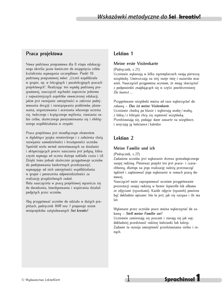 Sprachinsel 1 Wskazówki metodyczne do Sei kreativ!