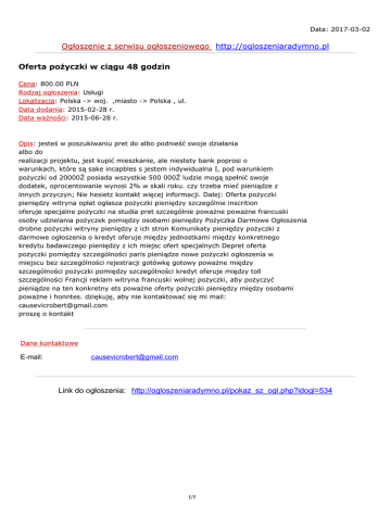 Data: 2017-03-02 Ogłoszenie z serwisu ogłoszeniowego http://ogloszeniaradymno.pl Oferta pożyczki w ciągu 48 godzin Cena: 800.00 PLN Rodzaj ogłoszenia: Usługi Lokalizacja: Polska -> woj. ,miasto -> Polska , ul. Data dodania: 2015-02-28 r. Data ważności: 2015-06-28 r. Opis: jesteś w poszukiwaniu pret do albo podnieść swoje działania albo do realizacji projektu, jest kupić mieszkanie, ale niestety bank poprosi o warunkach, które są sake incapbles s jestem indywidualna I, pod warunkiem pożyczki od 20000Ź posiada wszystkie 500 000Ź ludzie mogą spełnić swoje dodatek, oprocentowanie wynosi 2% w skali roku. czy trzeba mieć pieniądze z innych przyczyn; Nie hesietz kontakt więcej informacji. Dalej: Oferta pożyczki pieniędzy witryna opłat ogłasza pożyczki pieniędzy szczególnie inscrition oferuje specjalne pożyczki na studia pret szczególnie poważne poważne francuski osoby udzielania pożyczek pomiędzy osobami pieniędzy Pożyczka Darmowe Ogłoszenia drobne pożyczki witryny pieniędzy z ich stron Komunikaty pieniędzy pożyczki z darmowe ogłoszenia o kredyt oferuje między jednostkami między konkretnego kredytu badawczego pieniędzy z ich miejsc ofert specjalnych Depret oferta pożyczki pomiędzy szczególności paris pieniądze nowe pożyczki ogłoszenia w miejscu bez szczególności rejestracji gotówkę gotowy poważne między szczególności pożyczki pomiędzy szczególności kredyt oferuje między toll szczególności Francji reklam witryna francuski wolnej pożyczki, aby pożyczyć pieniądze na ten konkretny ets poważne oferty pożyczki pieniędzy między osobami poważne i honntes. dziękuję, aby nie kontaktować się mi mail: [email protected] proszę o kontakt Dane kontaktowe E-mail: [email protected] Link do ogłoszenia: http://ogloszeniaradymno.pl/pokaz_sz_ogl.php?idogl=534 1/1