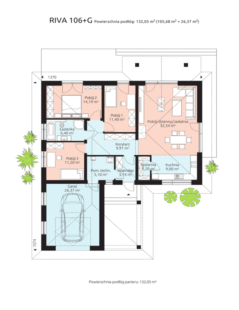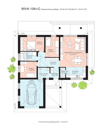 1574 1370 Garaż 26,37 m2 RIVA 106+G Powierzchnia podłóg: 132