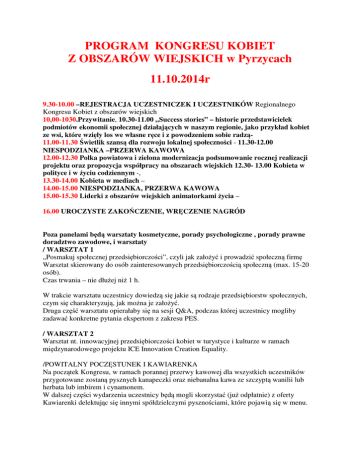 PROGRAM KONGRESU KOBIET Z OBSZARÓW WIEJSKICH w