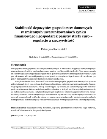 Katarzyna Kochaniak Stabilność depozytów