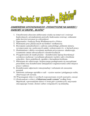 zamierzenia wychowawczo- dydaktyczne na marzec i kwiecień w