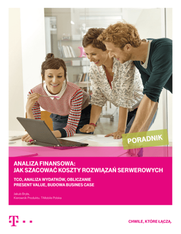 PORADNIK ANALIZA FINANSOWA: JAK SZACOWAĆ KOSZTY ROZWIĄZAŃ SERWEROWYCH TCO, ANALIZA WYDATKÓW, OBLICZANIE PRESENT VALUE, BUDOWA BUSINES CASE Jakub Bryła, Kierownik Produktu. T-Mobile Polska CHWILE, KTÓRE ŁĄCZĄ. Analiza finansowa jest jednym z najpopularniejszych narzędzi wspomagających podejmowanie decyzji. Jej sedno sprowadza się do porównania dwóch konkurujących scenariuszy: czy fragment pewnego rozwiązania ICT powinno się zlecić na zewnątrz (scenariusz A), czy też może zrobić go samodzielnie (scenariusz B). Upraszczając sprawę, można przyjąć następującą taktykę: jeśli scenariusz A okaże się tańszy od scenariusza B, to zdecydujemy się na zlecenie usługi na zewnątrz, ponieważ celem outsourcingu od zawsze było obniżenie kosztów. Co więcej, przy jednoczesnym zachowaniu – a często wzroście – jakości! Taka taktyka jest dobrym punktem wyjścia, choć czasem najbardziej ekonomiczny scenariusz wcale nie oznacza, że jest on dla nas najlepszy – ale o tym w dalszej części. Przyjrzyjmy się na wstępie, jak praktycznie zabrać się do wykonania pierwszego etapu analizy finansowej, czyli odpowiedzi na pytanie: w którym scenariuszu wydamy MNIEJ? TCO TCO jest najpopularniejszą miarą stosowaną przez decydentów w IT. Oznacza ona całkowity koszt posiadania (ang. total cost of ownership) i jest po prostu sumą wydatków na dane rozwiązanie IT w całym jego cyklu życia. PRZYKŁAD: Rozważamy zakup 3 dodatkowych serwerów. Dostaliśmy ofertę od dystrybutora na 45000 PLN za sprzęt fizyczny. Sprawdziliśmy też propozycję dostawcy świadczącego usługę typu IaaS (infrastruktura jako usługa) – w tej formule na serwery wydawalibyśmy 1200 PLN miesięcznie. Czas życia sprzętu oceniamy na 5 lat. Scenariusz A (outsourcing): wydamy 1200 PLN x 12 x 5 = 72000 PLN Scenariusz B (robimy sami): wydamy 45000 PLN Tego rodzaju kalkulacja niesie z sobą pokusę zakończenia rozważań i szybkiego podjęcia decyzji. Czarno na białym widać, że scenariusz B jest bardziej atrakcyjny, bo przecież TCO jest blisko 40% niższe. A jednak jest wiele czynników, których powyższa analiza nie obejmuje, a które musimy rozważyć, robiąc rzetelną analizę TCO (tabela 1). TABELA NR 1. TYPY WYDATKÓW SCENARIUSZ A (outsourcing) SCENARIUSZ B (samodzielnie) zasoby na żądanie energia elektryczna – utrzymanie łącze transmisyjne instalacja sprzętu obsługa kontraktu z partnerem przedłużenie gwarancji obniżenie opłat przy przedłużaniu umowy koszt napraw – dodatkowe miejsce/powierzchnia – sprzęt sieciowy (switch, kable) – rozbudowa/dodatkowe UPS 2 Energia elektryczna to wydatek najczęściej pomijany w kalkulacjach TCO. Składają się na niego nie tylko koszty energii elektrycznej, którą zużyją 3 nowe serwery, ale również moc wykorzystana przez system chłodzenia, UPS-y czy też dodatkowe urządzenia sieciowe (switch, ruter). Miesięczny koszt energii oscyluje zwykle w okolicach 100 PLN na 1 serwer. Przyjmijmy więc, że rocznie trzy serwery wygenerują koszt 3 600 PLN. Łącze transmisyjne w przypadku outsourcingu należy je również uwzględnić w kalkulacji. Jeżeli infrastruktura kupowana w formie usługi będzie obsługiwać systemy wykorzystywane w biurze przez pracowników (wewnętrzną sieć LAN), to może się okazać, że obecne łącze internetowe jest za mało wydajne. Często dobrym wyjściem jest zakup dedykowanego łącza typu ethernet line do centrum danych usługodawcy, u którego chcemy prowadzić outsourcing rozwiązania. Komplikacja ta oczywiście nie wystęUtrzymanie puje w sytuacji, gdy serwery zewnętrzne mają świadczyć usłuczęsto traktowane jest jako czynność, która magicznie znika gi do sieci globalnej (np. strona www, sklep internetowy, etc.). niezauważona w głębokim worku kosztów pośrednich. Skoro W naszym przypadku przyjmijmy, że 2 serwery będą świadczyteraz trzyosobowy dział IT obsługuje dziesięć serwerów, to czy ły usługi do sieci globalnej, a z usług trzeciego korzystać będą dodanie 3 kolejnych (30% więcej) nie obciąży nadmiernie pra- pracownicy siedziby głównej. Wówczas potrzebne będzie decowników? dykowane łącze ethernetowe 10 Mb/s – można je kupić (w pakiecie z innymi usługami) za 500 złotych miesięcznie. W różnych firmach aspekt ten jest różnie traktowany, często w ogóle pomijany. Czasami weźmiemy na siebie większe obciąObniżka opłat przy przedłużaniu umowy żenie, jednak zazwyczaj warto zwrócić uwagę na potencjalne przy outsourcingu infrastruktury IT, tak jak w przypadku każdej nadgodziny, zaniedbania w innych obowiązkach IT, niedogodinnej usługi, możemy liczyć na rabat za przedłużenie umowy ności kadrowe czy też po prostu potrzebę zwiększenia zasona kolejny okres. Po dwóch czy trzech latach lojalności 10% bów ludzkich. Aby oszacować potencjalny koszt, przyjmijmy na upustu jest w zasięgu nawet niewielkiej firmy. potrzeby tego przykładu, że na lokalnym rynku godzina pracy „na fakturę” dochodzącego specjalisty-administratora kosztuje Zasoby na żądanie 90 złotych. Do każdego z serwerów trzeba będzie wynająć spejeśli rozważamy outsourcing części infrastruktury w formie cjalistę na 1 godzinę miesięcznie. Łatwo więc policzyć, że roczusługi w chmurze (wirtualny serwer), warto pamiętać, że takie nie pojawia się dodatkowy wydatek w wysokości 3 240 PLN. usługi oferują możliwość rozliczania się za zużycie zasobów IT (RAM, CPU, HDD) – z dokładnością np. do godziny. Jeśli chaInstalacja sprzętu rakter pracy takiej infrastruktury jest cykliczny/sezonowy/nieczy dystrybutor zainstaluje sprzęt w serwerowni, czy trzeba to stały, można dużo zaoszczędzić. W przypadku, gdy owa sytuzrobić samodzielnie? Czy rzeczywiście nic nie kosztuje? Koszt acja nas dotyczy, warto uwzględnić jej korzyści w kalkulacji. Na ten najczęściej jest pomijany ze względu na jednorazowy chapoczątku należy określić,