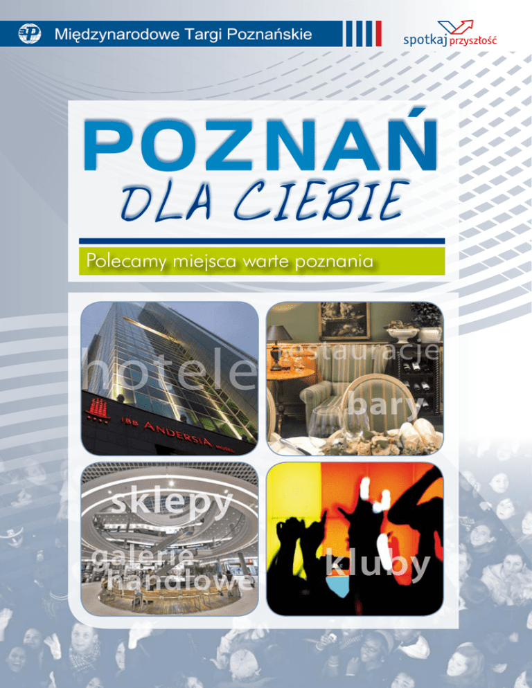 POZNAŃ DLA CIEBIE Polecamy miejsca warte poznania hotele restauracje bary sklepy galerie handlowe kluby świeżych sałatkach i daniach z grilla. Parking podziemny obiektu pozwala na wygodne pozostawienie samochodu w bezpiecznym miejscu. HOTEL WŁOSKI BUSINESS NIE SAMYM SNEM HOTEL ŻYJE Poznańskie obiekty znajdują się w ciekawych lokalizacjach, a poza odpoczynkiem gwarantują także liczne atrakcje. SPECJALNA OFERTA TARGOWA Kilka minut spaceru dzieli Stary Browar od kolejnego, niedawno otwartego obiektu – Włoski Business. Ten klasycznie elegancki hotel dysponuje 140 miejscami w 70 pokojach z klimatyzacją. Goście mogą skorzystać z hotelowej restauracji, serwującej śniadania europejskie i wykwintne kolacje na zamówienie. Przy budynku znajduje się przestronny parking strzeżony dla samochodów i autobusów. Do obiektu przylegają zielone tereny Łęgów Dębińskich, które mogą być doskonałym miejscem do uprawiania sportów, rekreacji oraz relaksujących spacerów. HOTEL NOVOTEL POZNAŃ CENTRUM Scena i parkiet w sali konferencyjnej, 790 miejsc w 480 pokojach z bezprzewodowym internetem – to oferta hotelu Novotel Centrum zlokalizowanego niedaleko Starego Browaru. Restauracja poleca dania kuchni europejskiej i regionalnej. Goście mogą się zrelaksować przy kawie/ herbacie parzonej własnoręcznie w pokojach, wyposażonych dodatkowo w mini-bar. Hotel oferuje gościom całodobowy room service. HOTEL ORBIS POLONEZ Ten widoczny z daleka obiekt, położony jest w bliskim sąsiedztwie Cytadeli, parku, do którego można wybrać się na długi spacer po spotkaniach biznesowych. Hotel jest przygotowany na przyjęcie prawie 600 gości, na których czekają dania kuchni europejskiej w gustownej restauracji. W pomieszczeniach konferencyjnych można organizować spotkania na 400 osób. Na gości czeka fryzjer, kosmetyczka, sauna, gabinet masażu. Spragnieni rozrywek mogą spróbować szczęścia w kasynie. POLECAMY HOTEL IBB ANDERSIA Wokół placu Andersa, przy którym stoi hotel, koncentruje się życie finansowo- biznesowe Poznania. Za sprawą Starego Browaru, uważanego za jedno z najlepszych centrów handlowych świata, goście mogą korzystać z szerokiej oferty usług gastronomicznych, robić zakupy tuż za drzwiami hotelu. Sam obiekt zajmuje kilkanaście pięter najwyższego budynku w mieście. Specjalnie dla gości targów Kamień – Stone, w porozumieniu z MTP, hotel przygotował pokoje typu Comfort. Wyposażone w klimatyzację i szybkie łącze internetowe, posiadają również minibar i telewizję satelitarną. Ponad 1000m² powierzchni konferencyjnej pozwala na przygotowanie sympozjów oraz kongresów nawet dla 800 osób. Oprócz wypoczynku w ekskluzywnych wnętrzach, IBB Andersia oferuje szeroką gamę zabiegów relaksacyjnych, masaży i odnowy biologicznej w kompleksie Harmonia Wellness Club & Pool. Goście mogą zregenerować swoje siły w Sali fitness, w saunie, na basenie i w jacuzzi. W hotelu znajduje się restauracja „Mosaica” oferująca dania kuchni z całego świata, lobby bar, gdzie serwowane są przekąski oparte na 2 Komfortowe wnętrza hotelu IBB Andersia 87 miejsc w 48 pokojach oferuje kolejny obiekt, usytuowany również w bezpośrednim sąsiedztwie Cytadeli. Pokoje są klimatyzowane, z mini-barem, bezpłatnym Internetem i telewizją. Hotel przygotowany jest do organizacji konferencji i spotkań biznesowych. Goście mogą wybierać między kameralnym Business Center, ekskluzywnym Klubem Hotelowym, salami Menuet i Symfonia. Mieszcząca się w budynku restauracja może ugościć do 50 osób. Szef kuchni serwuje potrawy kuchni polskiej i europejskiej. W części rekreacyjnej goście mogą korzystać z basenu oraz łaźni parowej. W sąsiedztwie hotelu znajdują się korty tenisowe. HOTEL MERCURE POZNAŃ Jego atutem jest niewątpliwie położenie – przy skrzyżowaniu głównych arterii, kilkaset metrów od wejścia na teren targów. Hotel dysponuje 228 pokojami, od jednoosobowych do apartamentów. Goście mogą skorzystać m.in. z sauny fińskiej w cenie noclegu. Znajdziemy tu wiele odwołań muzycznych - restauracja „Brasserie de L`Opera”, czy sale konferencyjne Cantata, Menuet, Sonata, Allegro. W Mercure można organizować spotkania i konferencje łącznie dla ponad 400 osób. W kawiarni „Passionata” warto spróbować ciastek i tortów wypiekanych na miejscu, w hotelowej cukierni. HOTEL NH POZNAŃ Niedawno otwarty hotel hiszpańskiej sieci znajduje się w stylowej, ponad 100 letniej kamienicy w samym centrum miasta. Starannie odrestaurowana, łączy w sobie tradycję z nowoczesnym wyposażeniem. Pokoje są przystosowane do potrzeb osób niepełnosprawnych. Oprócz noclegów obiekt oferuje miejsce do spotkań biznesowych, sale konferencyjne na 160 osób. W hotelowej restauracji oferowane są dania kuchni polskiej, hiszpańskiej oraz fusion. Dla gości otwarty jest Cocktail i Coffee Lounge, brasserie bar a także ogród zimowy. ADRESY HOTELI HOTEL VIVALDI IBB Andersia Adres: Plac Andersa 3 61-894 Poznań, Polska tel.: +48 61 667 81 00 e-mail: [email protected] www.andersiahotel.pl Hotel Włoski Business Adres: Ul. Dolna Wilda 8 61-552 Poznań, Polska tel.: +48 61 833 52 62 e-mail: [email protected] www.hotelwloski.pl Novotel Poznań Centrum Adres: Plac Władysława Andersa 1 61-894 Poznań, Polska tel.: +48 61 858 70 00 e-mail: [email protected] www.orbis.pl Orbis Polonez Adres: ul. Al. Niepodległości 36 61-714 Poznań, Polska tel.: + 48 61 864 71 00 e-mail: [email protected] www.orbis.pl Hotel Vivaldi Adres: ul. Winogrady 9 61-663 Poznań, Polska tel.: + 48 61 858 81 00 e-mail: [email protected] www.vivaldi.pl Mercure Poznań Adres: ul. Roosevelta 20 60-829 Poznań, Polska tel.: +48 61 855 80 00 e-mail: [email protected] www.orbis.pl NH Poznań Adres: Święty Marcin 67 61-806 Poznań, Polska tel.: + 48 61 624 88 00 e-mail: [email protected] www.nh-hotels.com 3 Papavero Adres: ul. 3 maja, 46, Poznań tel.: + 48 61 853 24 83 e-mail: [email 