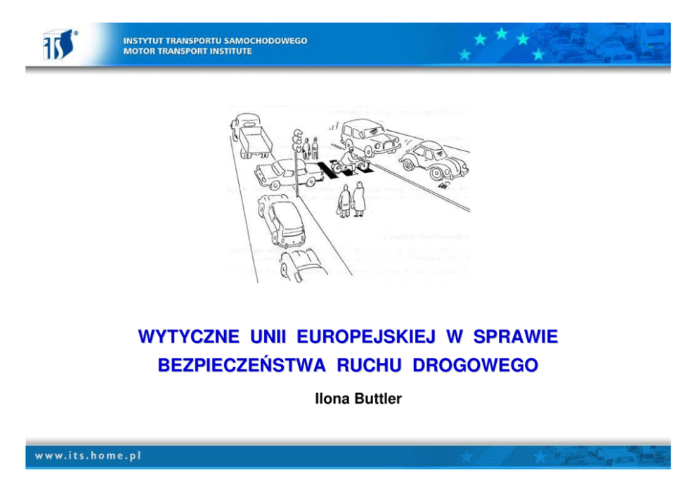 WYTYCZNE UNII EUROPEJSKIEJ W SPRAWIE BEZPIECZEŃSTWA RUCHU DROGOWEGO Ilona Buttler KILKA LICZB • Ruch w miastach odpowiada za 40 % emisji CO2 i 70 % emisji pozostałych zanieczyszczeń powodowanych przez transport drogowy. • Co trzecia ofiara śmiertelna wypadku drogowego ginie na terenie miasta, a ofiarami najczęściej są piesi i rowerzyści. W 2007 roku w stolicach krajów członkowskich Unii zginęło 1560 osób. UNIJNE PROGRAMY BEZPIECZEŃSTWA RUCHU DROGOWEGO Wspólna Polityka Transportowa UE do 2010r.: „Czas na decyzje” (wrzesień 2001r.) Trzeci Unijny Program Działania w Bezpieczeństwie Ruchu Drogowego: „Wspólna odpowiedzialność” (czerwiec 2003r.) Do 2010 roku zmniejszyć liczbę zabitych w ruchu drogowym o 50 % (2001). Krajowy Program Bezpieczeństwa Ruchu Drogowego 2005 – 2013, GAMBIT 2005. REALIZACJA UNIJNEGO I KRAJOWEGO PROGRAMU BRD W WARSZAWIE 160 140 3 Unijny Program 110 110 Liczba ofiar śmertelnych 120 GAMBIT 2005 Liczba zabitych 100 80 60 124 124 91 91 62 62 40 20 125 79 79 62 62 0 2001 2002 2003 2004 2005 2006 2007 2008 2009 2010 2011 2012 2013 Liczba ofiar śmiertelnych / 100 tys. mieszkańców Wilno Ryga Nikozja Bratysława 6,45 Ateny Warszawa Bukareszt Sofia Talin Rzym (ETSC; 2008) Budapeszt Luksemburg Lisbona Amsterdam Kopenhaga Bruksela Praga Londyn Madryd Dublin Sztokholm 2,1 Wiedeń Helsinki Oslo Paryż Berlin WARSZAWA NA TLE INNYCH STOLIC w 2007 ROKU 14 12 10 8 6 4 2 0 Ljubliana 4,9 PROBLEM MIAST W PROGRAMACH BRD Wspólna Polityka Transportowa UE do 2010r.: „Czas na decyzje” - Działania na rzecz upowszechnienie przyjaznych środowisku samochodów, rozwoju komunikacji publicznej. Trzeci Unijny Program Działania w Bezpieczeństwie Ruchu Drogowego: „Wspólna odpowiedzialność” - Zapowiedź opracowania wytycznych w sprawie Urban safety mamagement. Krajowy Program Bezpieczeństwa Ruchu Drogowego 2005 - 2013 - O miastach wspomina się jedynie w kontekście niskiej jakości infrastruktury (przejścia dróg tranzytowych przez miasta). DEKLARACJA NA TEMAT ZASAD PROWADZENIA POLITYKI BEZPIECZEŃSTWA RUCHU DROGOWEGO W MIASTACH (Aneks do Europejskiej Karty Bezpieczeństwa Ruchu Drogowego) Władze lokalne odgrywają kluczową rolę w realizacji celu przyjętego przez 3 Unijny Program Działań w Bezpieczeństwie Ruchu Drogowego. Rozwiązania służące poprawie bezpieczeństwa ruchu drogowego powinny być centralnym elementem miejskiej i regionalnej polityki transportowej oraz priorytetem w różnych programach strategicznych dla miast i regionów. DEKLARACJA NA TEMAT ZASAD PROWADZENIA POLITYKI BEZPIECZEŃSTWA RUCHU DROGOWEGO W MIASTACH Lokalne władze mogą przyczynić się do ograniczenia zagrożeń w ruchu drogowym wdrażając rozwiązania, które odwołują się do następujących zasad: • Poprawa bezpieczeństwa ruchu musi uwzględniać wszystkie rodzaje transportu, zmotoryzowany i niezmotoryzowany [10]. • Bezpieczeństwo niezmotoryzowanych rodzajów transportu, a bardziej ogólnie niechronionych uczestników ruchu powinno być wzmocnione. Specjalna uwaga powinna być zwrócona na najmniej niechronione osoby: dzieci, osoby starsze i niepełnosprawne. Można to osiągnąć poprzez poprawę przepisów prawnych, szkolenie i edukację oraz tworzenie lepszej infrastruktury transportowej spełniającej potrzeby rowerzystów i pieszych [11, 2]. DEKLARACJA NA TEMAT ZASAD PROWADZENIA POLITYKI BEZPIECZEŃSTWA RUCHU DROGOWEGO W MIASTACH • Sukces polityki prewencyjnej zależy od możliwości władz lokalnych wyegzekwowania przepisów prawnych. Stąd egzekucja przepisów dotyczących jazdy po spożyciu alkoholu, stosowania hełmów i pasów bezpieczeństwa oraz ograniczeń prędkości jest konieczne [4]. • Prędkość ma znaczący wpływ na liczbę i ciężkość wypadków drogowych. Kontrola prędkości oraz polityka zarządzania prędkościami jest zatem istotna dla poprawy bezpieczeństwa ruchu drogowego [1]. • Edukacja i szkolenie jest ważnym elementem polityki BRD. Należy prowadzić lokalne kampanie dotyczące bezpieczeństwa; mają one większy wpływ użytkowników dróg niż kampanie realizowane na poziomie krajowym [3]. DEKLARACJA NA TEMAT ZASAD PROWADZENIA POLITYKI BEZPIECZEŃSTWA RUCHU DROGOWEGO W MIASTACH • Projekty dróg i ich otoczenia mogą pomóc w ograniczaniu liczby wypadków na drogach [5]. • Warto niektóre działania ukierunkować na redukowanie zagrożeń w miejscach i obszarach o wysokim wskaźniku wypadków (tzw. „czarne punkty” czy „czarne strefy”) [6]. ZIELONA KSIĘGA: „W KIERUNKU NOWEJ KULTURY MOBILNOŚCI W MIEŚCIE” (Wrzesień 2007 r.) Wyzwania: 1. Płynny ruch w mieście; 2. Zielone miasta; 3. Inteligentny transport miejski; 4. Dostępny transport miejski; 5. Bezpieczny i niezawodny transport miejski. Na jesieni 2008 roku spodziewana jest publikacja Białej Księgi. HISZPAŃSKI „URBAN ROAD SAFETY MASTER PLAN” Propozycje wspierające działania lokalne Hierarchia priorytetów na publicznym obszarze miasta: Piesi oraz osoby z ograniczonymi możliwościami poruszania się Komunikacja miejska Rowerzyści Transport towarów Pojazdy jednośladowe Samochody osobowe PROMOCJA NOWYCH WZORÓW MOBILNOŚCI W MIASTACH (ETSC; 10. 2008) • Promowanie lokalizacji niektórych celów podróży w takich sposób, aby można było je osiągnąć na piechotę lub rowerem, komunikacją miejską; • Poprawa jakości komunikacji miejskiej; • Tworzenie atrakcyjnych i bezpiecznych tras dla pieszych i rowerzystów; • Ograniczenia prędkości pojazdów tam, gdzie ich ruch pojazdów odbywa się w pobliżu chodzących i jeżdżących na rowerach ludzi; • Promowanie stref 30 km/h w obszarach zamieszkania. WYMIANA NAJLEPSZYCH ROZWIĄZAŃ („Best practice”) European cities and regions networking for innovative transport solutions http://www.polis-online.org/ The European Local Transport Information Service http://www.eltis.org/ The network of major European cities (Warszawa, Katowice, Kraków, Łódź, Wrocław, Lubli