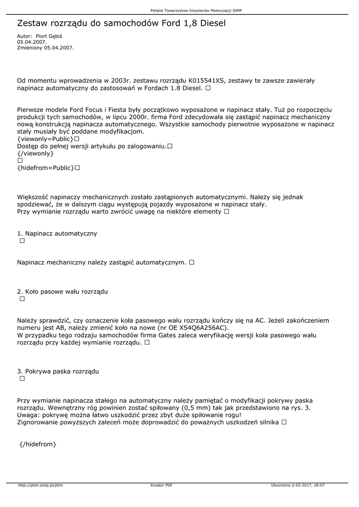 produkcji tych samochodów, w lipcu 2000r. firma Ford zdecydowała się zastąpić napinacz mechaniczny