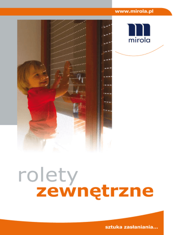 www.mirola.pl rolety zewnętrzne sztuka zasłaniania... www.mirola.pl Najważniejszym miejscem, w którym spędzamy połowę życia jest nasz dom lub mieszkanie. Warto więc zadbać o jego bezpieczeństwo, a sobie zapewnić wygodę, komfort, poczucie intymności i swobody. Propozycją, która w pełni zaspokoi te wymagania są rolety zewnętrzne firmy MIROLA. Proponowane przez nas cztery kompletne systemy rolet zewnętrznych oraz system rolet antywłamaniowych pozwolą na ich montaż podczas różnych etapów budowy lub remontu, a doskonałe walory użytkowe i estetyczne gwarantują zadowolenie i pewność, że nasze produkty sprostają wszelkim wymaganiom. systemy rolet antywłamaniowy standardowy podtynkowy upk rks nakładany sks Każda roleta zewnętrzna składa się z następujących elementów: Pancerz – składa się z lameli czyli profili aluminiowych o grubości do 9mm wypełnionych pianką poliuretanową. Szczególny rodzaj pianki o wysokiej twardości stosowany jest w antywłamaniowym systemie „Safe”. Lamele są dostępne w wysokościach 37 – 55mm. Powlekane są lakierami poliestrowymi co czyni je odpornymi na ścieranie i działanie czynników atmosferycznych Kaseta – zwija się do niej pancerz rolety. W zależności od wysokości rolet stosowane są różne wielkości kaset, możliwe jest także zastosowanie różnorodnych kształtów, od tradycyjnych prostokątnych ze ścięciem po całkowicie zaokrąglone. Wszystkie dostępne są w wielu wariantach kolorystycznych oraz bogatej gamie oklein drewnopodobnych. Prowadnice pionowe mogą być aluminiowe lub PCV w zależności od wybranego systemu. Porusza się w nich pancerz rolety. Wyposażone są w uszczelki gumowe lub szczotkowe oraz ślizgi z tworzywa PCV, które pozwalają na niemal bezszelestne podnoszenie i opuszczanie pancerza. W systemie „Safe” prowadnice posiadają dodatkowo blokadę zabezpieczającą pancerz przed wyrwaniem. Wał nawojowy wyposażony jest z jednej strony w łożysko, z drugiej strony w napęd ręczny lub elektryczny. Napęd rolety może być tradycyjny, ręczny z zastosowaniem zwijaczy sznurowych lub pasowych, zwijaczy korbowych, mechanizmów sprężynowych oraz komfortowy napęd elektryczny renomowanej firmy SOMFY, sterowany wyłącznikami klawiszowymi lub pilotem, z programowaniem czasowym, automatyką zmierzchową, wiatrową i słoneczną. www.mirola.pl system antywłamaniowy Szczególne wymogi w zakresie bezpieczeństwa obiektu możliwe są do spełnienia tylko dzięki zastosowaniu specjalistycznych rolet zewnętrznych z atestem antywłamaniowym. Zapewnienie określonego w badaniach antywłamaniowych minimalnego czasu sforsowania rolet wymusza szereg zmian konstrukcyjnych w stosunku do rozwiązań standardowych. Posiadają je rolety antywłamaniowe „Safe” MIROLA: pancerz aluminiowy o większej grubości z wypełnieniem twardą, wysoko udarową żywicą epoksydową z aretowaniem zabezpieczającym przed wyrwaniem z prowadnic, kasetę zewnętrzną GK-5E o większej sztywności, prowadnice ze wzmocnionych profili aluminiowych, z dodatkową blokadą i specjalną komorą zabezpieczającą pancerz przed wyrwaniem, listwy końcowe wzmocnione profilem stalowym w kształcie T wraz ze specjalnym ryglowaniem automatycznym, pakiet bezpieczeństwa SOMFY obejmujący napęd elektryczny z zabezpieczeniem antywłamaniowym. Potwierdzeniem własności antywłamaniowych jest posiadany atest WK 2. Dzięki temu oferowane rolety antywłamaniowe stanowią realną, potwierdzoną w toku wymagających badań ochronę okien, pomieszczeń kasowych, obiektów szczególnego ryzyka, itp. Należy również dodać, że pomimo spełnienia rygorystycznych norm atestu, rolety zachowują wszystkie pozostałe walory użytkowe, jak tłumienie hałasu, dodatkową izolację termiczną, pełne zaciemnienie, itd. system standardowy Najbardziej uniwersalny i dzięki prostemu montażowi, najczęściej wybierany system. Jest możliwy do zastosowania zarówno na etapie budowy, jak i do budynków już wykończonych lub remontowanych np. w trakcie wymiany okien. Montowany jest na zewnętrznej stronie budynku i zapewnia wysoki poziom izolacji cieplnej. Może być mocowany w dwojaki sposób: montaż na elewacji Kaseta rolety montowana jest nad wnęką okienną, na elewacji budynku, dzięki czemu nie przesłania światła otworu. Cechuje go prostota wykonania i praktycznie brak ograniczeń technicznych. montaż we wnęce okiennej W tym przypadku kaseta rolety osadzana jest we wnęce okiennej i przesłania górną część okna. Możliwe jest zmniejszenie wysokości kasety, jednak montaż tego rodzaju nie jest polecany przy niskich otworach okiennych. system nakładany SKS To system rolet zintegrowanych z oknem. Możliwy do zastosowania w trakcie budowy domu lub podczas wymiany okien. Kaseta z pancerzem rolety oraz prowadnice mocowane są do ramy okna, a następnie w postaci zestawu, montowane w otworze okiennym. Ocieplenie kasety od wewnątrz wkładem styropianowym, poprawia jej właściwości termoizolacyjne. System umożliwia montaż, dzięki któremu kaseta i prowadnice są częściowo ukryte, lub zupełnie niewidoczne na elewacji. Od strony wewnętrznej widoczna jest jedynie kaseta rolety wraz z uchylną pokrywą rewizyjną, umożliwiającą dostęp do środka kasety od dołu lub od czoła, dla celów serwisowych i konserwacyjnych. www.mirola.pl system podtynkowy UPK System ten może być stosowany podczas budowy, w trakcie modernizacji budynku, przed ociepleniem lub przy wymianie okien. Wymaga przygotowania odpowiednich wnęk na kasety oraz montażu przed wykonaniem tynków zewnętrznych. Czołowa część kasety wyposażona jest w nośnik tynku, aby mogła zostać zasłonięta izolacją i otynkowana. System UPK zapewnia najwyższy poziom estetyki, gdyż kaseta rolety staje się niewidoczna od zewnątrz i zostaje wkomponowana w fasadę budynku. Z zewnątrz widoczna jest dolna pokrywa kasety, umożliwiająca dogodny dostęp przy ko