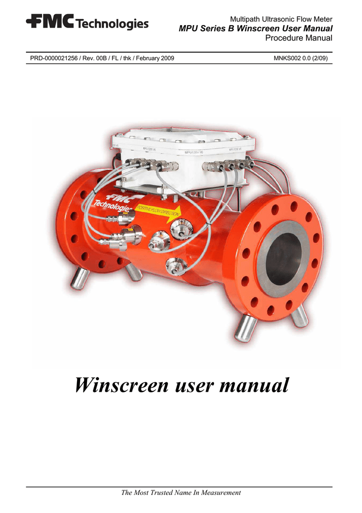 Multipath Ultrasonic Flow Meter MPU Series B Winscreen User Manual Procedure Manual PRD-0000021256 / Rev. 00B / FL / thk / February 2009 MNKS002 0.0 (2/09) Winscreen user manual The Most Trusted Name In Measurement Dokument ten jest kopią oryginalnej wersji Instrukcji Obsługi FMC Technologies, przetłumaczoną i wydaną bez końcowej inspekcji FMC Technologies. Historia Revision Date Editor ECN Status released Take over from KOS SAP System Description Rev. 01 11.12.2007 xx --- Rev. 00A April 2008 NB 20207 released New Logo 00B February 2009 Thk 20512 Released New front and last page WaŜne Wszystkie informacje i specyfikacje techniczne zawarte w tej dokumentacji zostały uwaŜnie sprawdzone przez autora. Nie moŜemy jednak całkowicie wykluczyć błędów. Wszelkie błędy znalezione w instrukcji prosimy zgłosić do firmy Integrotech sp. z o.o. Page 2 of 42 PRD-0000021256 Rev. 00B MNKS002 0.0 (2/09) Spis treści 1. WPROWADZENIE ...................................................................................5 1.1. Prawa autorskie ................................................................................5 1.2. Znaki towarowe .................................................................................5 1.3. Skróty.................................................................................................6 1.4. Gwarancja ..........................................................................................7 1.5. Wymagania sprzętowe .....................................................................8 2. OPERACJE WSTĘPNE ...........................................................................9 2.1. Instalacja oprogramowania Winscreen...........................................9 2.2. Deinstalacja oprogramowania Winscreen ......................................9 2.3. Ustawianie adresu IP na komputerze (tylko Ethernet)...................9 3. URUCHAMIANIE PROGRAMU WINSCREEN ...................................... 10 3.1. Nawiązanie połączenia z gazomierzem Ulradźwiękowym. .......... 11 3.1.1. Nawiązanie pierwszego połączenia .......................................... 11 3.1.2. Ustanowienie połączenia poprzez łącze Ethernet ..................... 12 3.1.3. Ustanowienie połączenia poprzez łącze szeregowe. ................ 13 3.2. Uruchomienie Winscreen w trybie symulatora ............................ 13 3.3. Rozwiązywanie problemów - Ethernet .......................................... 14 4. OBSŁUGA PROGRAMU WINSCREEN ................................................ 15 4.1. Przegląd Menu................................................................................. 15 4.2. Wartości mierzone .......................................................................... 16 4.2.1. Alarm indicator (górny lewy róg) – status alarmu ...................... 17 4.2.2. Current Values – dane bieŜące ................................................. 18 4.2.3. Current Path Values – dane bieŜące na ścieŜkach ................... 18 4.2.4. Axial Flow Profile – osiowy profil przepływu .............................. 19 4.2.5. Transversal Flow (tylko dla gazomeirzy sześciościeŜkowych) .. 19 4.2.6. Velocity / VOS History............................................................... 19 4.3. Trend (zapis danych do pliku) ....................................................... 20 4.4. Konfiguracja bazy danych ............................................................. 22 4.4.1. Zawartość okna konfiguracji bazy danych. ............................... 23 4.5. Zmiana parametrów ........................................................................ 24 4.6. Rejestry............................................................................................ 26 4.6.1. Rejestr aktywnego alarmu (Active alarm log)............................ 27 4.6.2. Rejestr alarmu historycznego (Historical alarm log) .................. 27 4.6.3. Rejestr zdarzeń ......................................................................... 28 4.6.4. Rejestr zmian operatora............................................................ 28 PRD-0000021256 Rev. 00B MNKS002 0.0 (2/09) Page 3 of 42 4.7. Raport bazy danych ........................................................................ 29 4.7.1. Wybór formatu raportu .............................................................. 30 4.7.2. Wydruk Raportu Bazy Danych .................................................. 31 4.7.3. Zapisywanie Raportu Bazy Danych .......................................... 32 4.7.4. Eksportowanie Raportu Bazy Danych....................................... 32 4.7.5. Otwieranie Raportu Bazy Danych ............................................. 32 5. INNE OPCJE ......................................................................................... 33 5.1. SYMULACJA.................................................................................... 33 5.2. ZMIANA HASŁA I POZIOMU BEZPIECZEŃSTWA ......................... 34 5.2.1. Zmiana hasła. ........................................................................... 34 5.2.2. Zmiana poziomu bezpieczeństwa ............................................. 35 5.3. Zmiana jednostek............................................................................ 36 5.4. Nastawianie czasu gazomierza ...................................................... 36 5.5. Dostęp do parametrów systemu.................................................... 37 5.6. Znajdywanie nowych urządzeń...................................................... 38 5.7. Komunikacja poprzez modem analogowy .................................... 39 5.7.1. Konfiguracja modemu ............................................................... 39 Page 4 of 42 PRD-0000021256 Rev. 00B MNKS002 0.0 (2/09) MPU Series B Ultrasonic Flow Meter 1. WPROWADZENIE Instrukcja obsługi zawiera informacje dotyczące obsługi interfejsu programu Winscreen i narzędzi diagnostycznych dla gazomierzy ultradźwiękowych FMC 