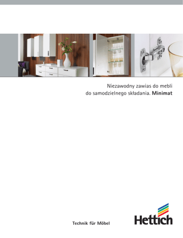 Niezawodny zawias do mebli do samodzielnego składania. Minimat Technik für Möbel 2 Minimat Więcej możliwości zróżnicowania Minimat to zawias wysokiej jakości i o długiej żywotności. Nowy design sprawdzonego zawiasu do drzwi uchylnych został opracowany specjalnie z myślą o meblach do samodzielnego składania i zapewnia niezwykły potencjał dla kreowania filigranowego designu mebli. Niewielka głębokość puszki pozwala na zastosowanie cienkich frontów meblowych. Dzięki temu można kontynuować trend w kierunku większej indywidualności, jak również wykorzystać możliwości zróżnicowania jakie zapewnia wysokiej jakości design zawiasu i prowadnika. Technika jest idealnie dobrana do zastosowania i montażu. Zawias Minimat idealnie nadaje się do zastosowania w szafkach z szufladami wewnętrznymi i gwarantuje pewne otwieranie i zamykanie drzwiczek meblowych. Poprzedni model można wymienić bez konieczności zmiany nawiercenia. Tolerancje nawierceń zakrywane są przez kołnierz zakrywający nowego zawiasu. Tak samo prosta jest regulacja frontów w 3 płaszczyznach. Montaż odbywa się za pomocą sprawdzonej techniki z otworem kluczowym. Typowy Hettich! 3 Minimat Zalety na pierwszy rzut oka Ukierunkowanie na design w zakresie mebli do samodzielnego składania Zawiasy Minimat mogą być dostarczane na życzenie z zamontowanymi eurowkrętami w prowadniku i zawiasie lub w woreczkach. Ten wysoki stopień konfekcjonowania proponowany jest w szczególności w zakresie mebli do samodzielnego składania. 4 Regulacja głębokości +2 / -2 mm z dokładnością co do milimetra Wyrównanie tolerancji nawierceń dzięki puszce zawiasu z kołnierzem zakrywającym Zintegrowana regulacja nałożenia +0 / -4 mm dla idealnego ustawienia szczeliny Regulacja wysokości +2 / -2 mm dla wyrównania frontów meblowych Niewielka głębokość puszki: 10 mm 5 i Mini zawias Minimat Wysokie wymagania jakościowe Jakość zawiasów Minimat jest kontrolowana przez cały czas. Bierzemy pod uwagę różnorodne wymagania jakościowe stawiane przez różne rynki i branże. Poniższe rysunki przedstawiają w przykładowy sposób zasadę testów, którym poddawane są zawiasy. Test na działanie sił poziomych W przypadku tego testu, nazywanego również testem na rozciąganie, drzwi otwierane są przy użyciu określonej siły F poza przewidziany kąt otwarcia. Test na działanie sił pionowych W tym teście drzwi zostają dodatkowo obciążone V ertikaltest dużym ciężarem G, a następnie poddane określonej liczbie cykli otwierania i zamykania. Überdehntest F F G Test na otwieranie i zamykanie Drzwi obciążone dodatkowo określonym ciężarem G muszą wytrzymać ustaloną liczbę cykli otwierania i V erschleißtest zamykania. F G 6 i Mini zawias Minimat Przegląd produktów i Informacje techniczne Minimat 6234 8-9 Kąt otwarcia 95° do drzwi o grubości do 25 mm 10 - 11 Minimat 6204 Prowadniki System 6000 Kąt otwarcia 95° do szkła o grubości do 6 mm Prowadniki System 6000 12 - 13 14 7 i Mini zawias Minimat Informacje techniczne Położenie drzwi Drzwi nakładane W tym przypadku drzwi położone są na zewnątrz korpusu mebla. Na obu bokach pozostają tylko nieznaczne wolne przestrzenie konieczne do prawidłowego otwierania się drzwi. Drzwi na przegrodę środkową (nakładane) W tym przypadku dwoje drzwi położonych jest na zewnątrz korpusu mebla opierając się o jego przegrodę środkową. Pomiędzy nimi pozostaje tylko niewielka łączna szczelina, dzięki czemu nałożenie drzwi jest zredukowane. Zastosowanie znajdują tutaj zawiasy z wygięciem ramienia. Drzwi wpuszczane W tym przypadku drzwi położone są wewnątrz, pomiędzy ścianami bocznymi korpusu mebla. Także tutaj konieczna jest szczelina aby drzwi mogły się prawidłowo otwierać. Zastosowanie znajdują tutaj zawiasy z dużym wygięciem ramienia. Minimalna szczelina Minimalna szczelina przy drzwiach leżących na przegrodzie środkowej Odległość puszki C Odległość puszki C jest wymiarem pomiędzy krawędzią drzwi, a krawędzią otworu pod puszkę zawiasu. Im większą dobierzemy odległość puszki C, tym mniejsze będzie wychylenie drzwi, a tym samym minimalna szczelina konieczna do prawidłowego otwierania się drzwi. Minimalna szczelina (nazywana również wychyleniem lub przejściem drzwi) stanowi niezbędną wolną przestrzeń pomiędzy drzwiami a bokami korpusu, konieczną do prawidłowego otwierania drzwi. Wielkość minimalnej szczeliny zależna jest od odległości puszki C, grubości drzwi i rodzaju wybranego zawiasu. Zaokrąglenia na krawędziach drzwi zmniejszają wychylenie. Wymagana minimalna szczelina podana jest w tabeli przy danym rodzaju Nałożenie (nałożenie drzwi) / podstawa 2 x minimalna szczelina W przypadku drzwi leżących na przegrodzie środkowej łączna wartość szczeliny pomiędzy drzwiami powinna zostać tak dobrana, aby była co najmniej dwa razy większa niż wychylenie drzwi. Wówczas drzwi otwierane mogą być jednocześnie. Nałożenie A Podstawa B Nałożenie drzwi oznacza odległość o jaką zewnętrzna krawędź drzwi wystaje poza wewnętrzną krawędź boku korpusu. Podstawa B oznacza odległość o jaką wystaje puszka poza ewnętrzną krawędź boku korpusu przy prowadniku z dystansem 0. Ilość zawiasów przypadających na jedne drzwi: Max. szerokość drzwi 500 do 800 Wysokość drzwi do 2000 do 1800 do 1500 Czynnikami decydującymi o ilości zawiasów na jedne drzwi jest ich wysokość, szerokość, ciężar oraz materiał, z którego zostały one wykonane. Występujące w praktyce czynniki są różne w różnych przypadkach. Dlatego też wymienione na rysunku ilości zawiasów są tylko ilościami zalecanymi. W przypadkach wątpliwych zaleca się próbny montaż zawiasów i jeśli to konieczne dopasowanie ich ilości. Ze względu na stabilność drzwi odległość X powinna być jak największa. 5 4 3 2 (wartości dla płyt wiórowych o grubości 19 mm i gęstości