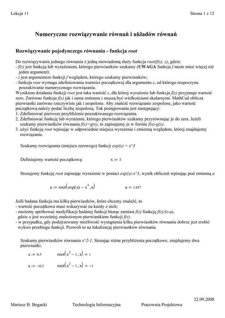 zero. Zarówno funkcja f(z) jak i sama zmienna z muszą być wielkościami skalarnymi. MathCad oblicza