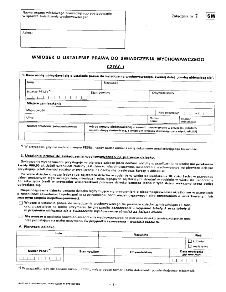 (wypeiniltYlko-w przyj,adku·ubiegania·się ·o świadczenie wychowawcze na pietwsze· dziecko):
