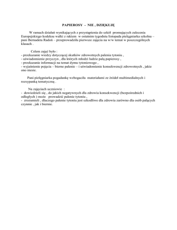 PAPIEROSY - NIE , DZIĘKUJĘ W ramach działań wynikających z