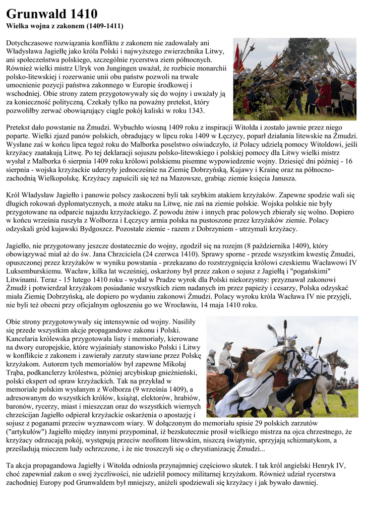 niewoli. Zwycięstwo pod Grunwaldem było triumfem króla