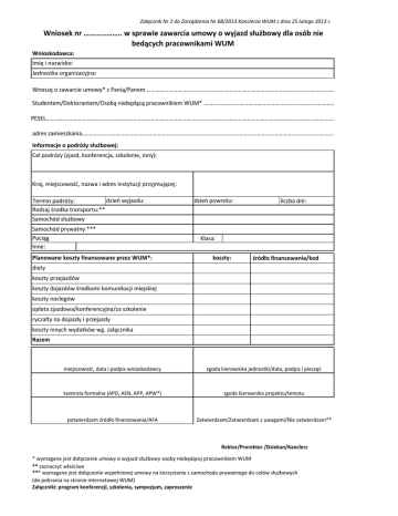 Wniosek ws. zawarcia umowy o wyjazd służbowy dla osób nie