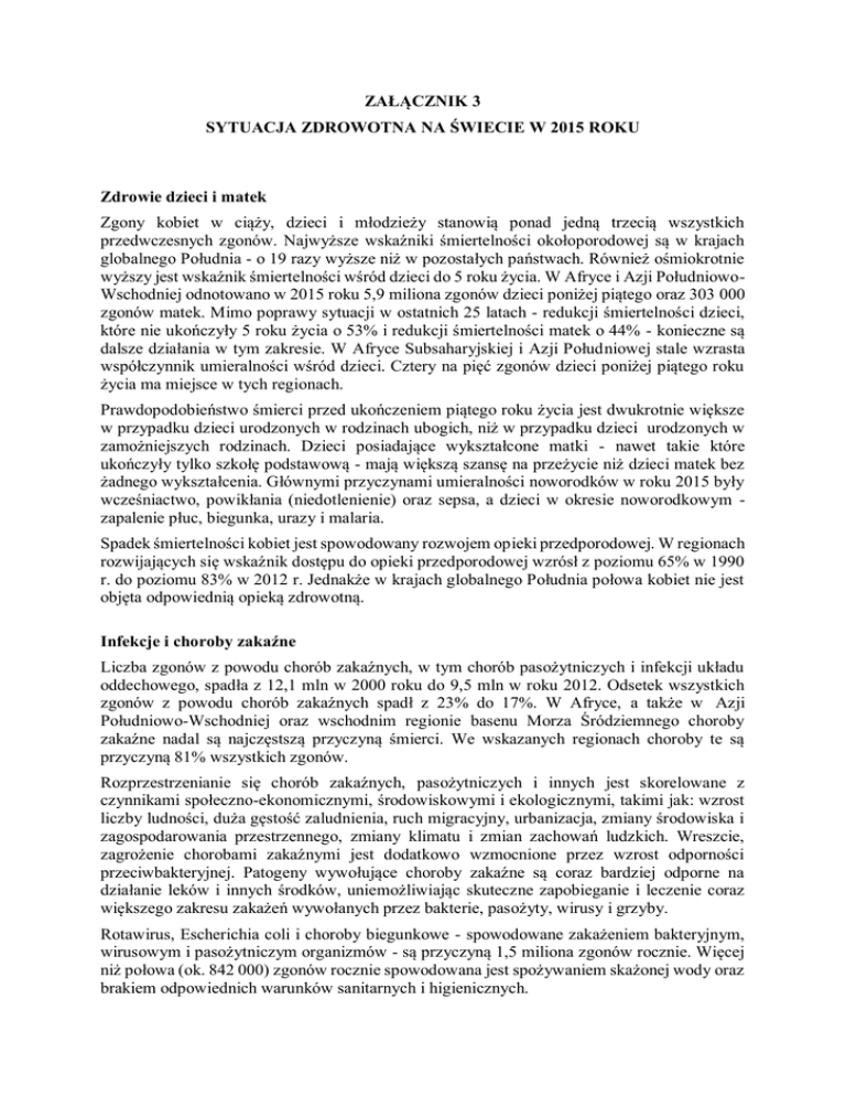 ZAŁĄCZNIK 3 SYTUACJA ZDROWOTNA NA ŚWIECIE W 2015