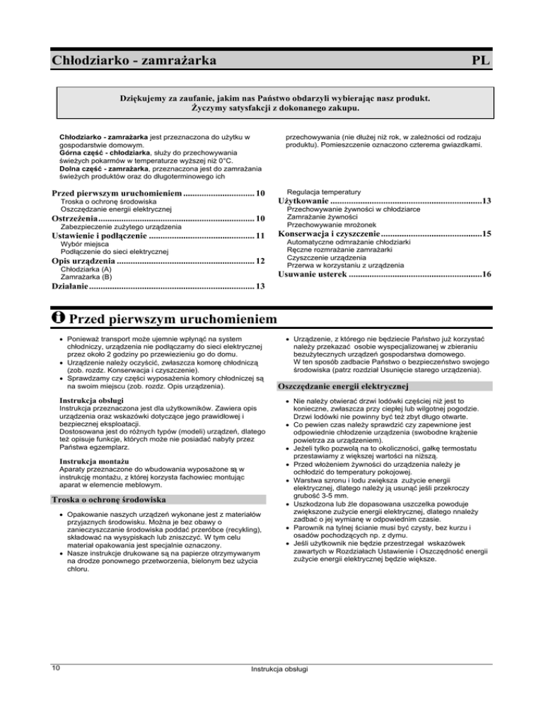 Chłodziarko - zamrażarka PL Przed pierwszym uruchomieniem