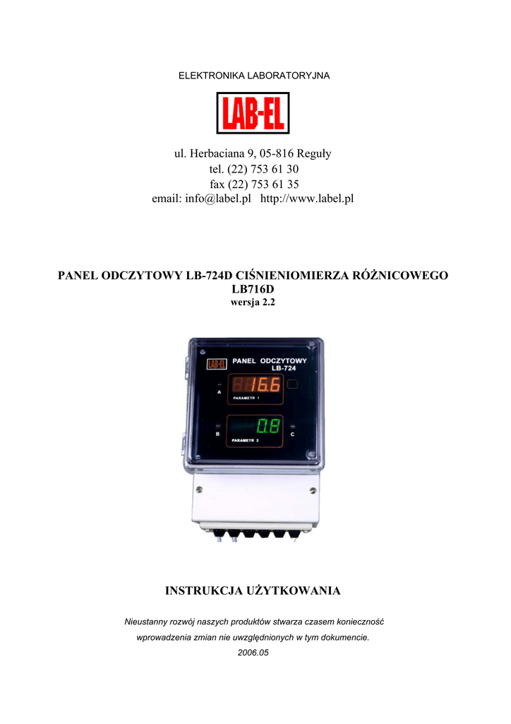Instrukcja użytkowania LB-724D/LB-716D - LAB-EL