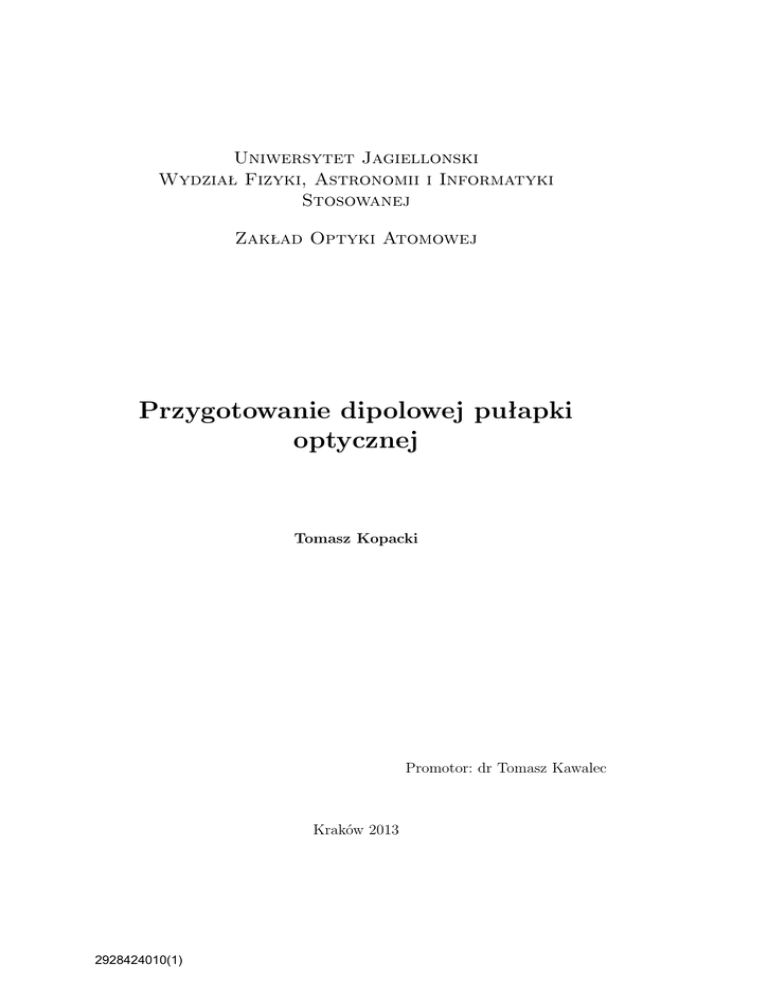 Wyrazy wdzięczności składam również współpracownikom z Zakładu Optyki Atomowej UJ. Szczególne podziękowania kieruje do Dobrosławy BartoszekBober, Romka Panasia, pana Stanisława Pajki oraz Tomka Nowaka.