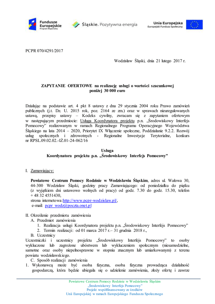 PCPR 070/4291/2017 Wodzisław Śląski, dnia 21 lutego 2017 r