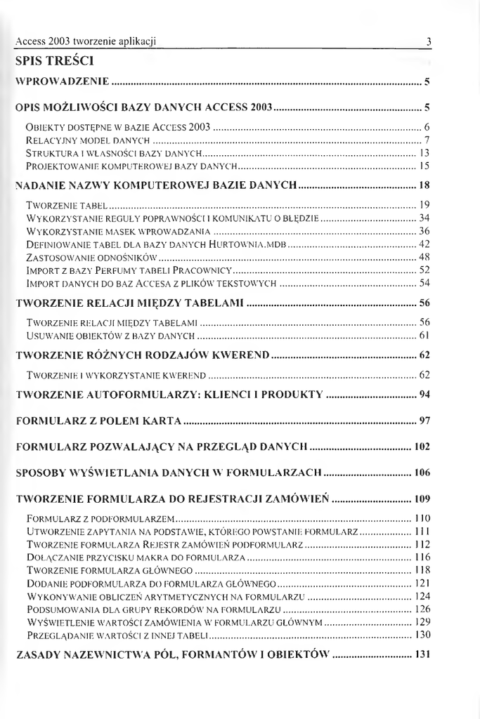 Access 2003 : tworzenie aplikacji - spis treści