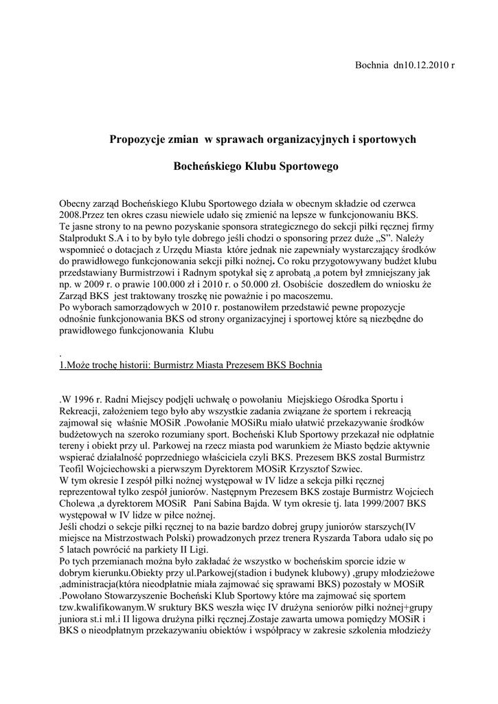 1.Może trochę historii: Burmistrz Miasta Prezesem BKS Bochnia