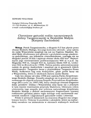 tunków roślin n a c z y n i o w y c h w d o l i n i e T a r g a n i c z a n k i . W n i