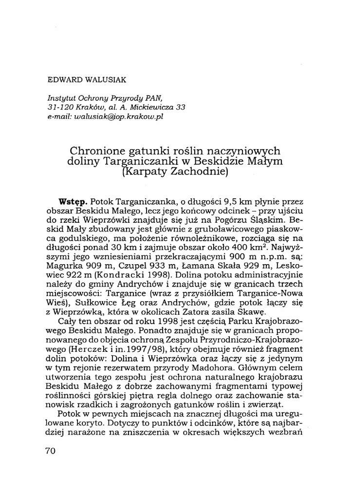 Wstęp. Potok T a r g a n i c z a n k a , o długości 9,5 k m płynie przez