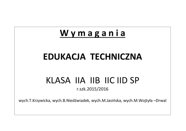 W y m a g a n i a EDUKACJA TECHNICZNA KLASA IIA IIB IIC IID SP