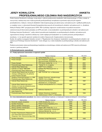 Polskiego Instytutu Dyrektorów”, aŜeby ułatwić poszukiwanie kandydatów na profesjonalnych członków rad nadzorczych,
