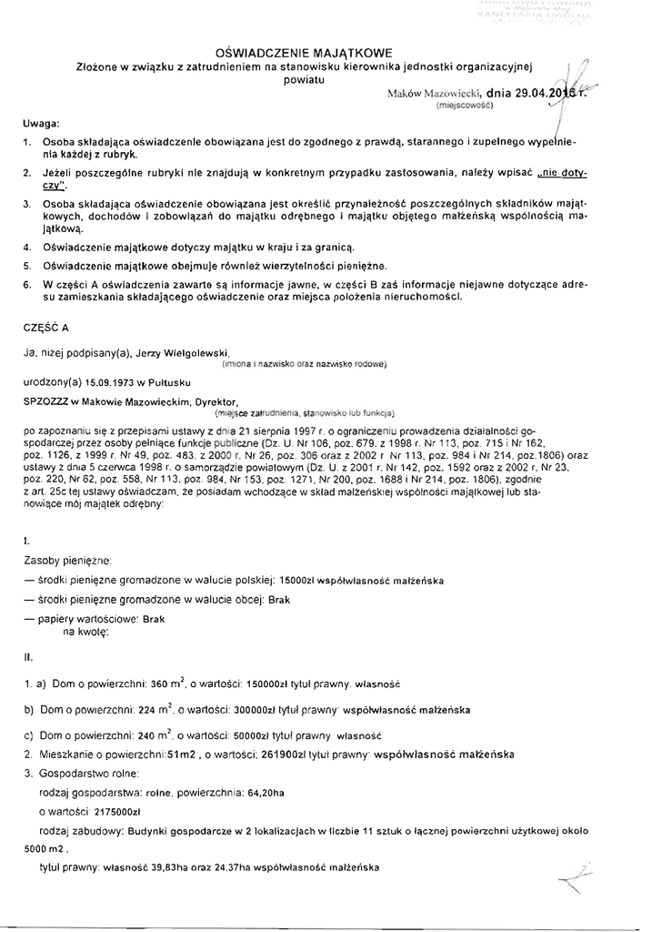 OŚWIADCZENIE MAJĄTKOWE Maków Mazowiecki, dnia 29.04.20