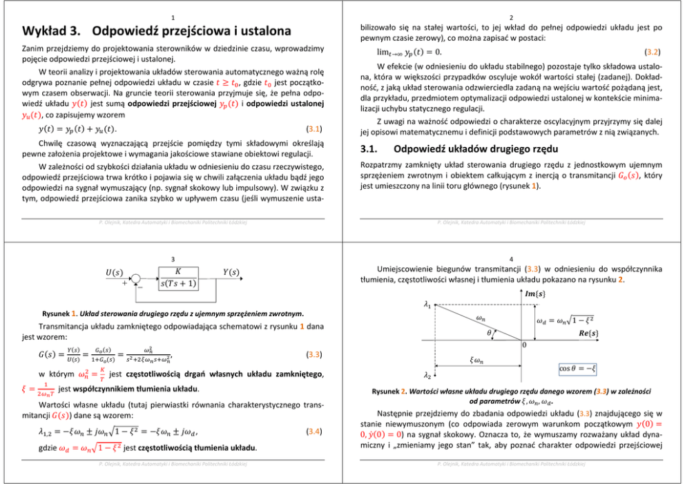 3.3. Odpowiedź przejściowa układów wyższych rzędów – uwaga