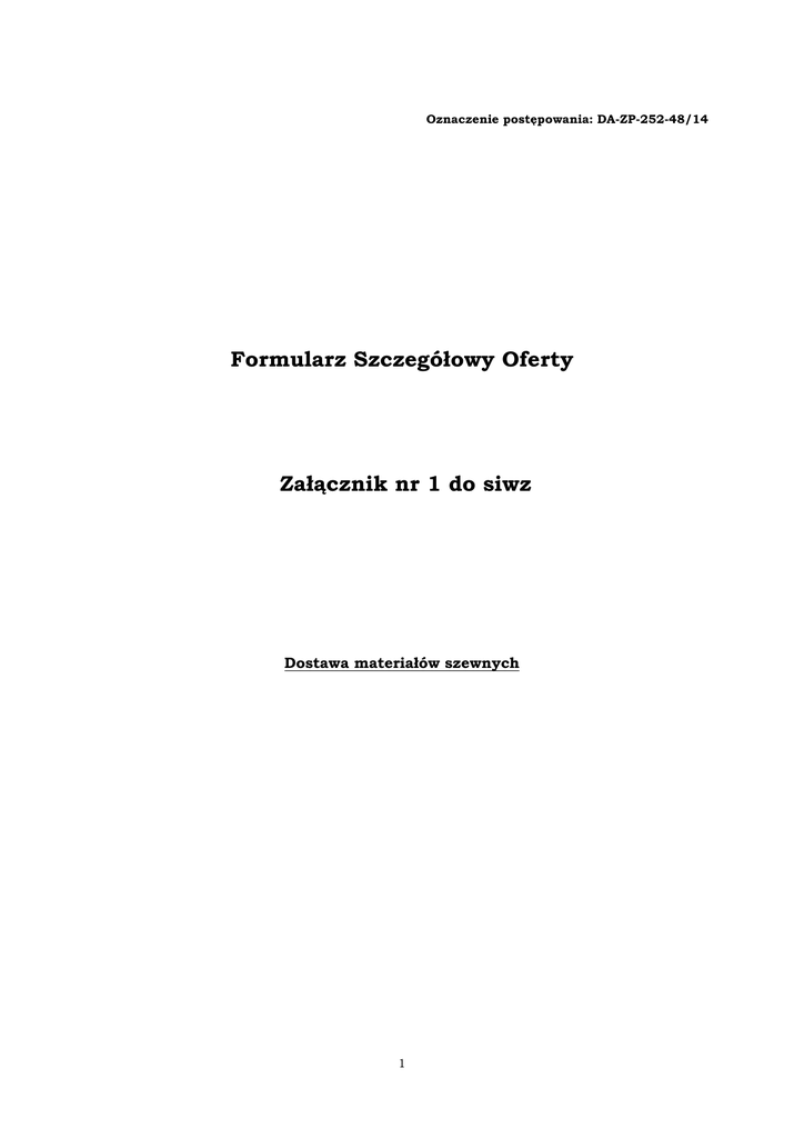 Załącznik nr 1 do siwz - Formularz Szczegółówy Oferty (DA-ZP