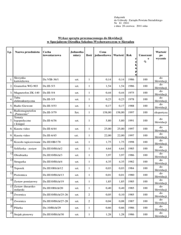 Wykaz sprz tu przeznaczonego do likwidacji w Specjalnym O rodku